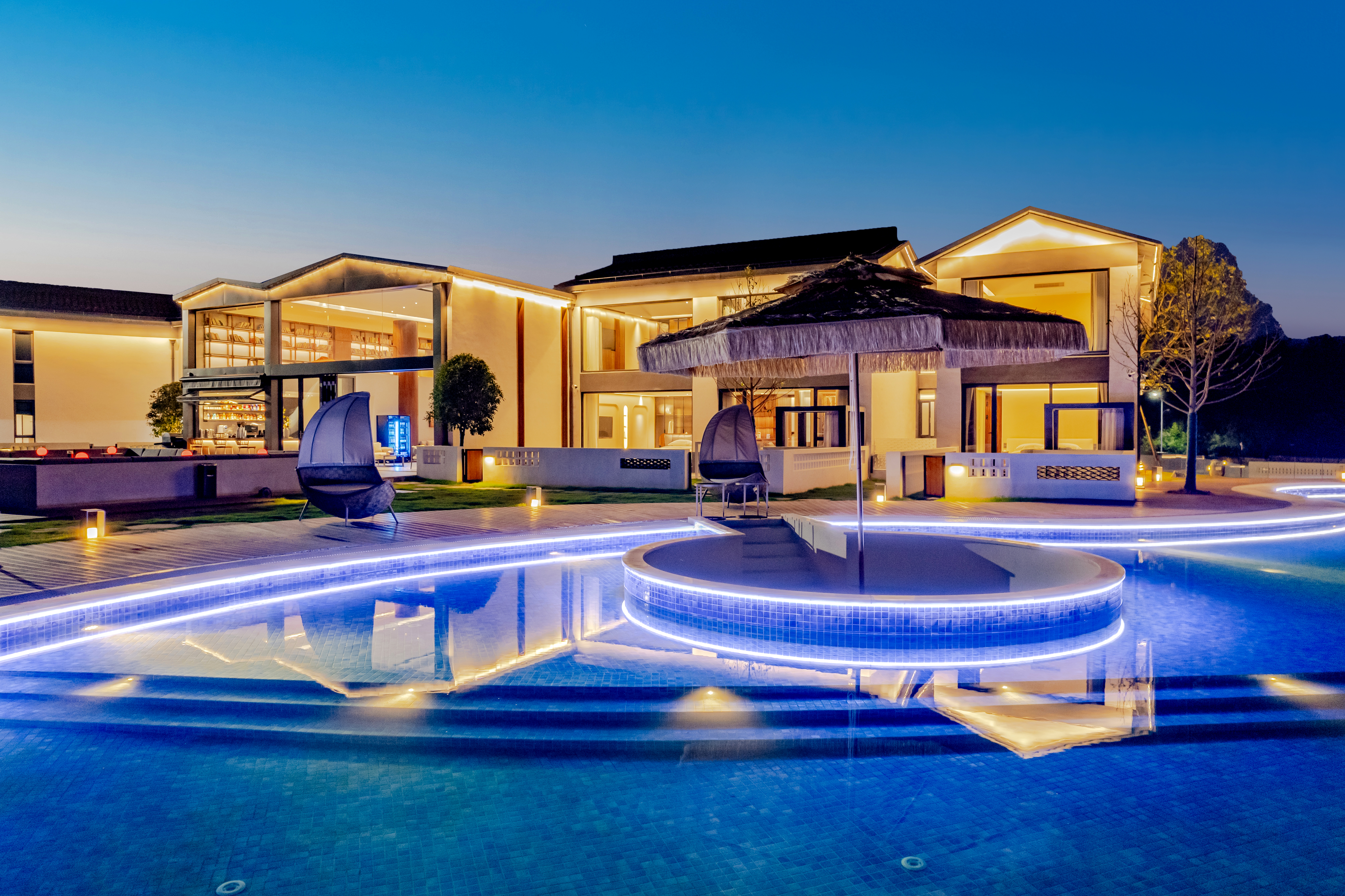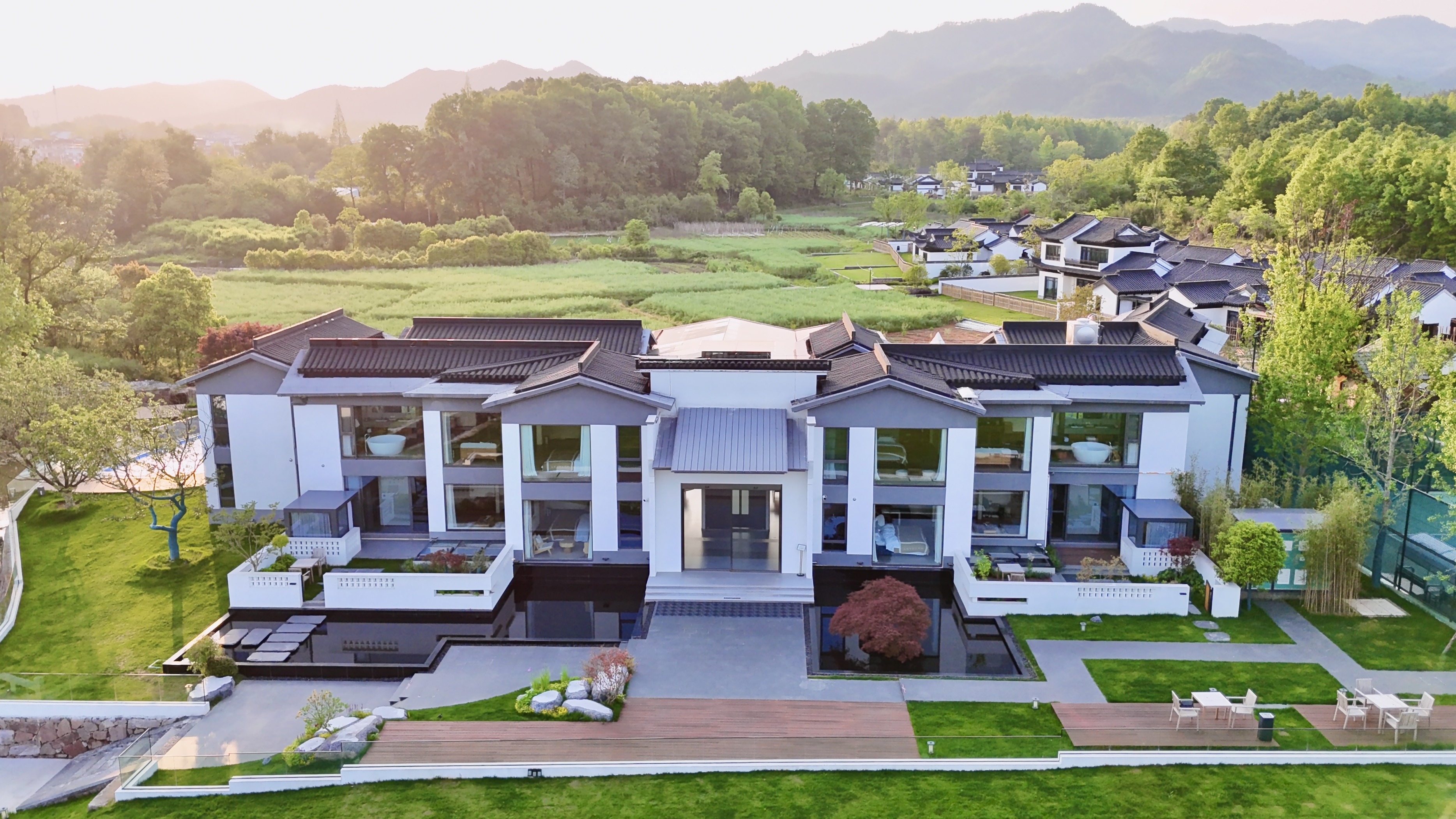 民宿经营项目客房、餐饮、咖啡厅、会议、娱乐(无边际泳池、电影院、KTV、网球场、户外BBQ、草坪婚礼),徽州心灵休憩地,悠享自然雅趣,奢逸旅居胜地。