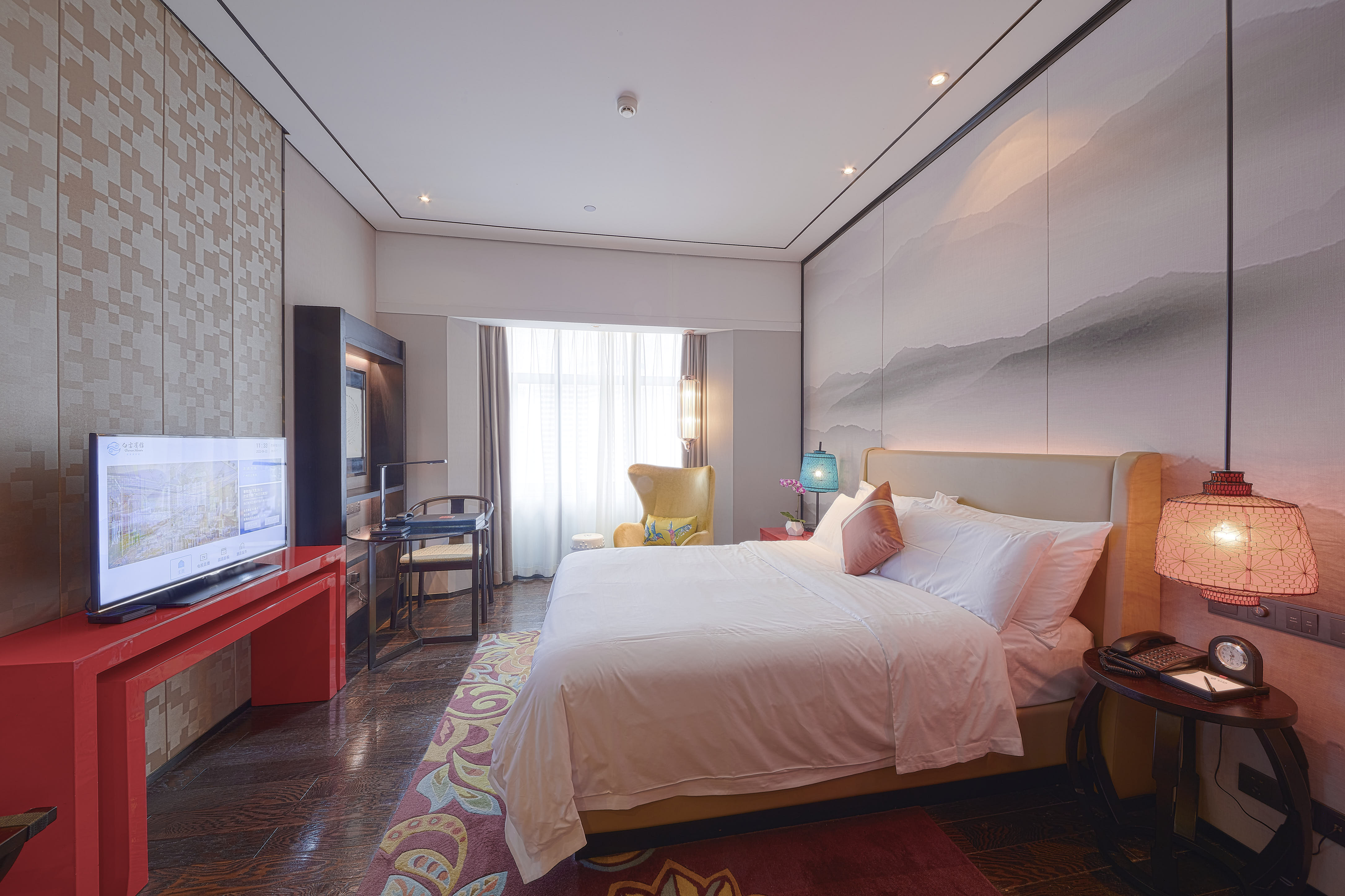 廣州白云賓館周邊國際名品名店、高檔寫字樓林立,盡顯國際名都的風采:麗柏廣場、世貿中心、友誼商店,繽紛精彩;緊鄰知名的風情酒吧街,不僅匯聚潮、粵、湘、川等風味名吃,更集中了世界各地的經典美食,廣州白云賓館客人可在五分鐘步程,領略現代化大都市的繁華與魅力。白云賓館交通便利,性價比高。地鐵站近在咫尺,往會展中心只需短暫車程,系廣交會等廣州會展酒店訂房的理想選擇。廣州白云賓館擁有客房548間,其中26-28樓白云行政客房于2020年冬季全新升級完成,2021年5月1日嶄新登場。客房內設有迷你吧、私人保險箱等,公共設施配套健身房,游泳池。位于33樓的高空泳池,讓您暢游空中,城市美景盡收眼底。