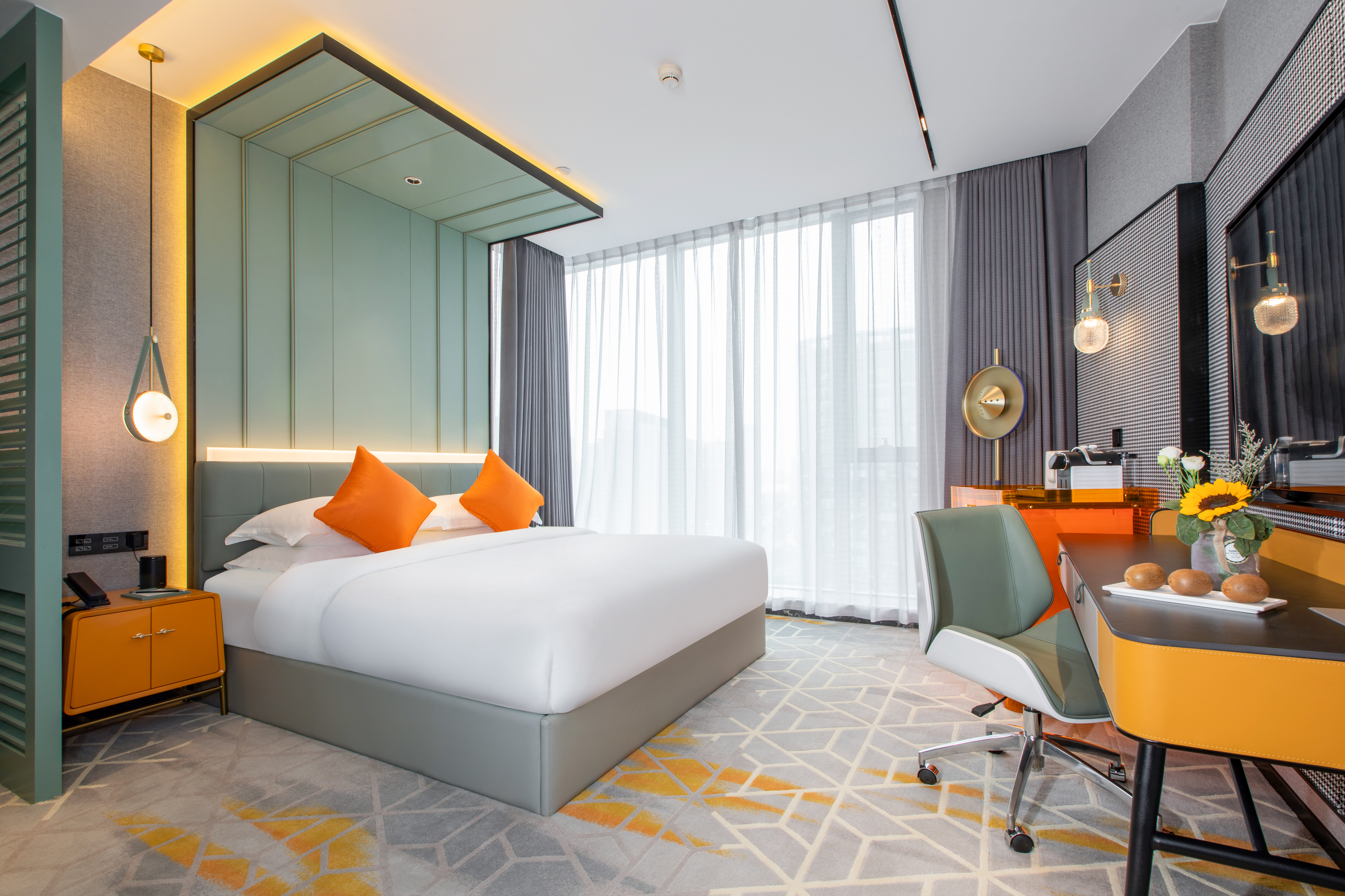 酒店坐落于国际重要湿地名录—杭州西溪国家湿地公园地段,占地5800方,是集住宿、餐饮、会议为一体的综合性商务酒店。酒店拥有高级房型、商务房型、亲子房型等。客房设有茶台,配有全自动胶囊咖啡机、高端舒适的床垫及床品。浴室采用步入式淋浴间及热带雨林式喷头,配有国际品牌吹风机,将袅娜的江南与现代商务完美的融合一起,把至尊华贵的居住体验带给每一个入住的客人酒店配套设施齐全,拥有5个城市景观独立包厢,80余位同时用餐的小资中餐区,且拥有同时能容纳80人用餐的120方无柱多功能厅,厅内配有顶奢的音频、灯光、舞台、屏幕、舞美等设备可承办各种会议,宴会。