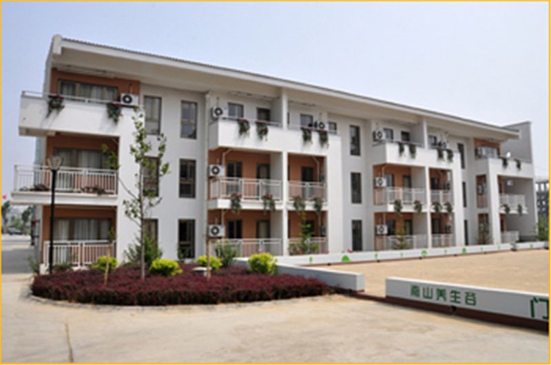 南山国际休闲疗养中心位于国家5A级旅游景区-南山旅游景区东侧,北靠南山佛光山景(温泉)花园,南依南山主题公园-欢乐峡谷,东临南山丹岭高尔夫球场,南山老年大学、山东大学齐鲁医院南山分院。总占地面积9.38万平方米,建筑面积3.76万平方米,绿化率达60%,建筑密度16.1%。承袭南山山水余脉,谷间鸟鸣不断、溪水长流,自然景区、人文景观交相呼应,交通便利,位置优越,是绝佳的老年疗养休闲圣地。