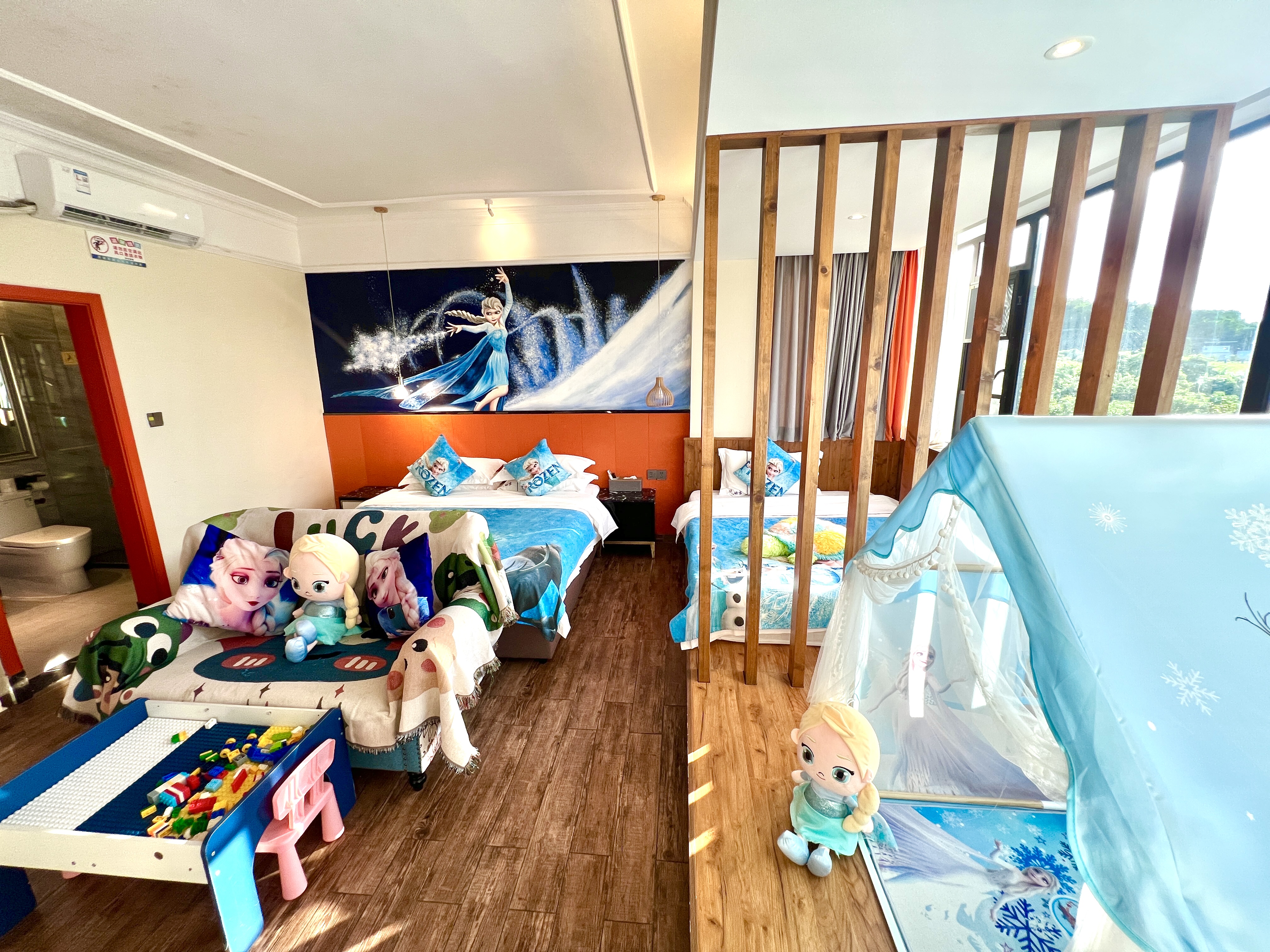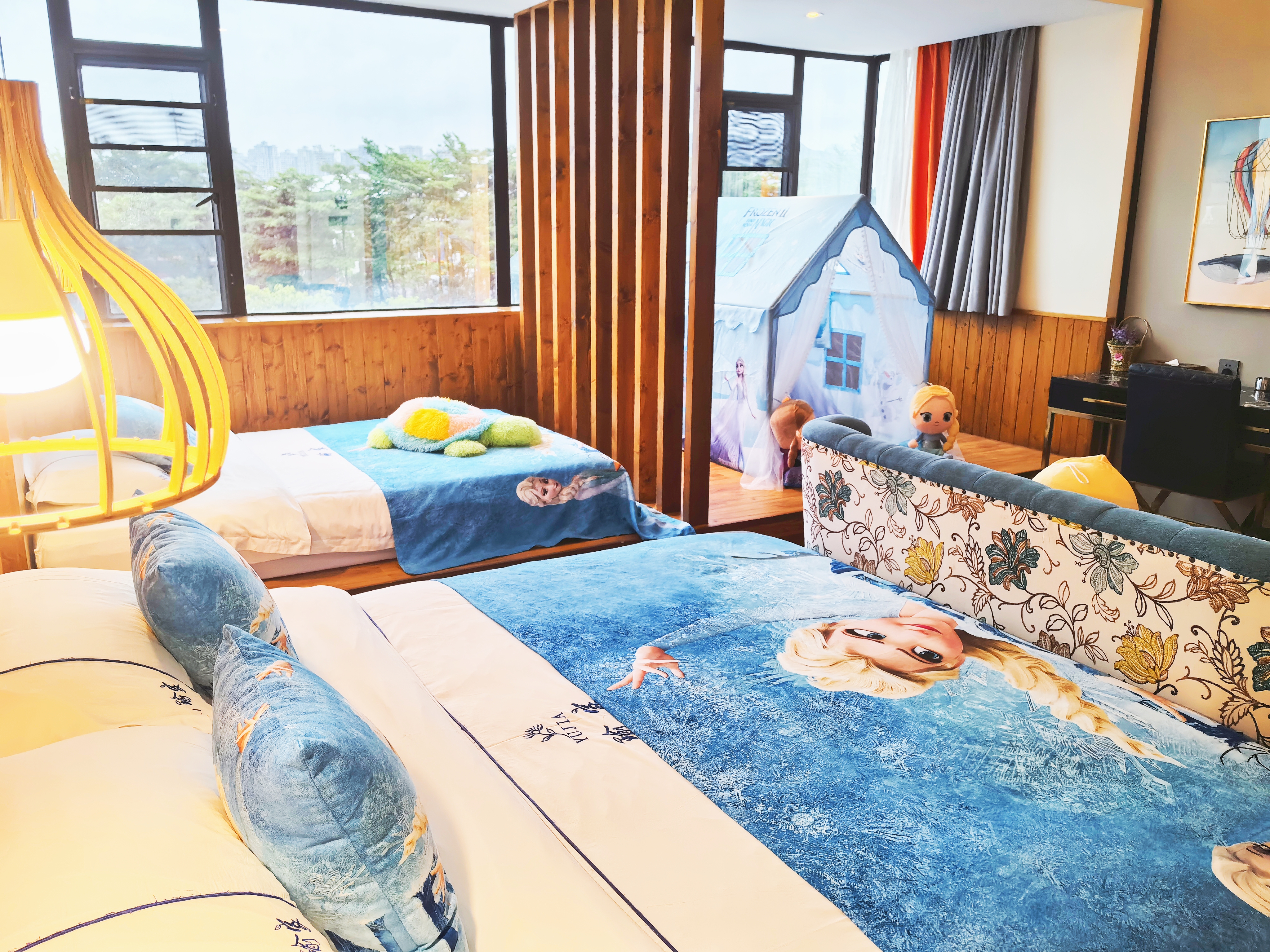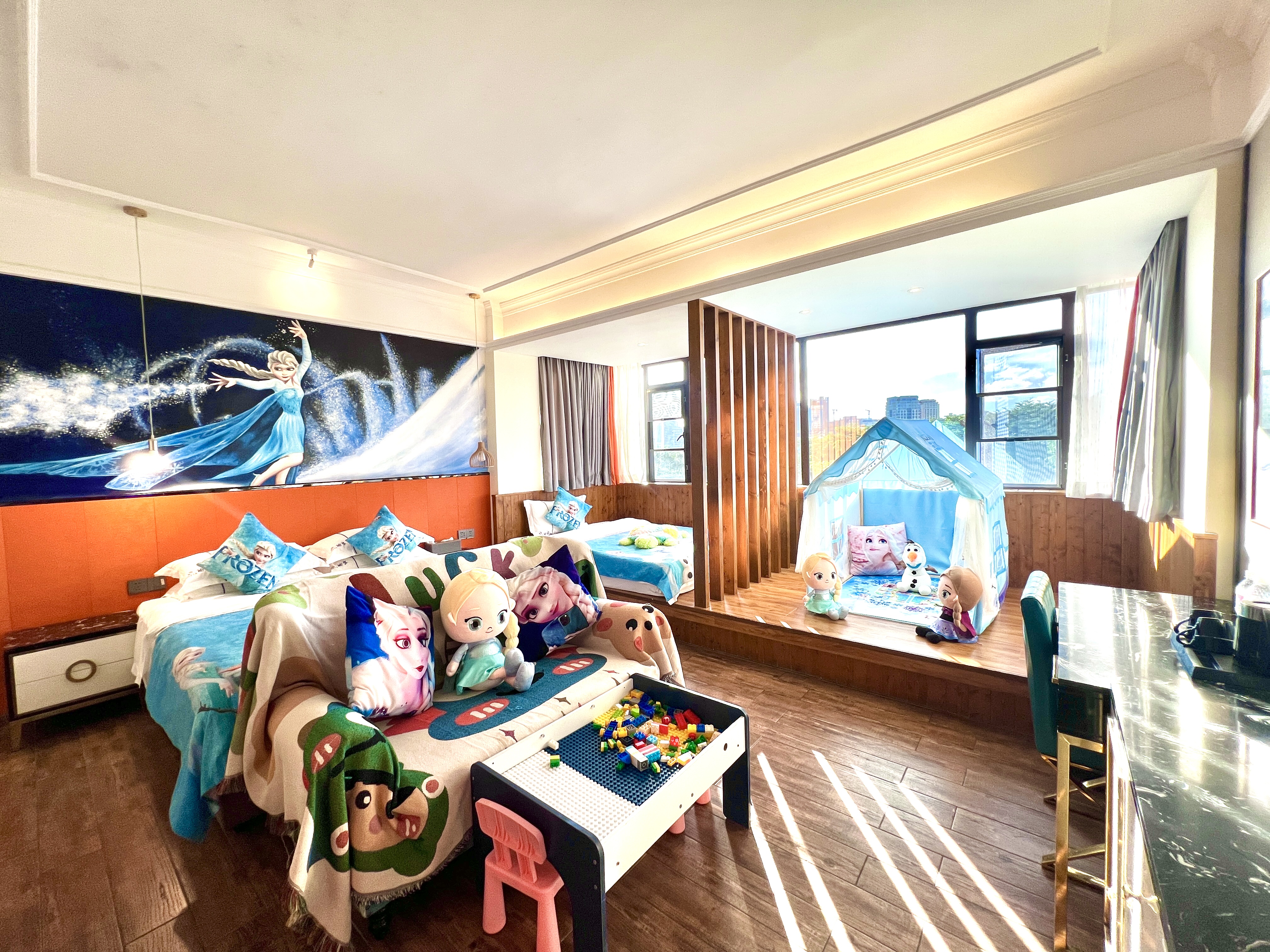艾莎·公主亲子主题房(大空间+实木榻榻米+趴趴凳)