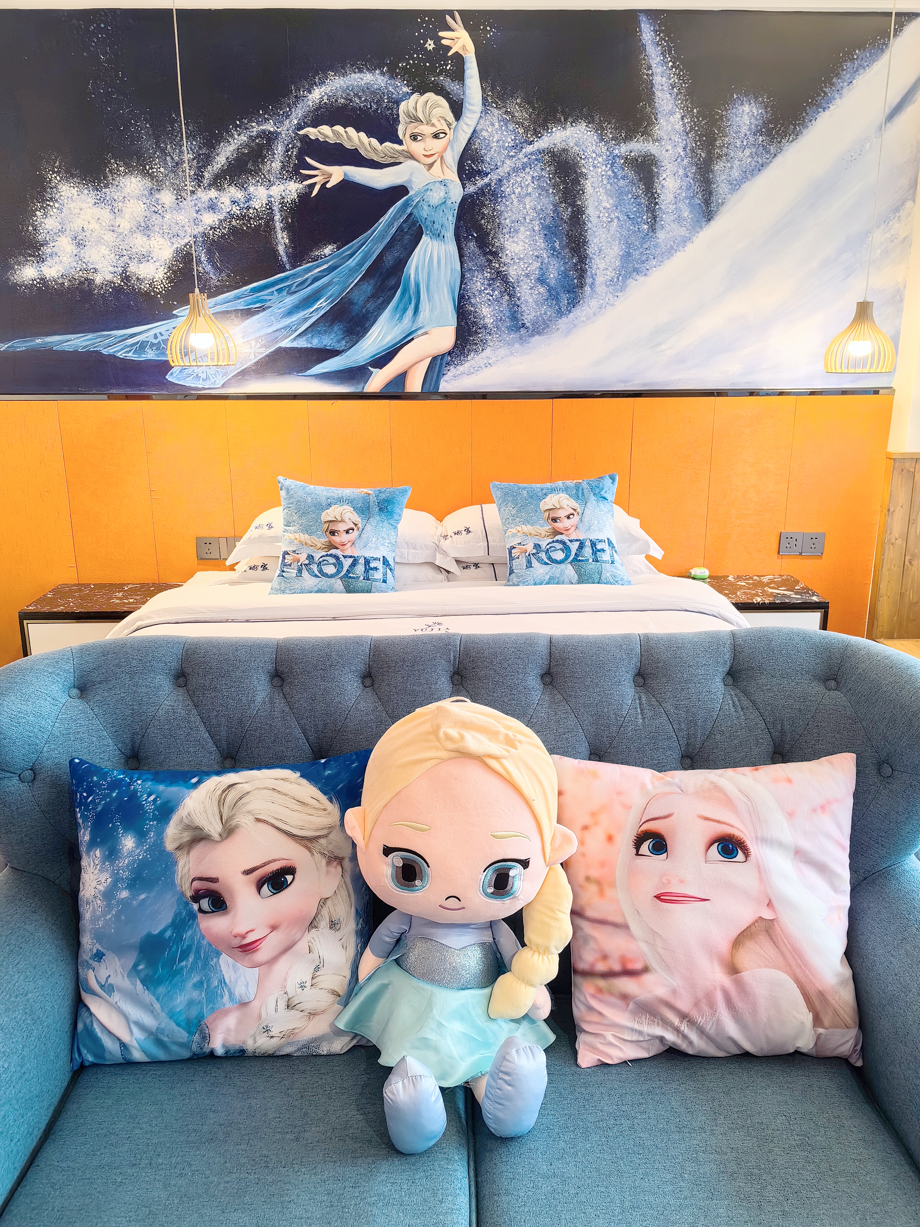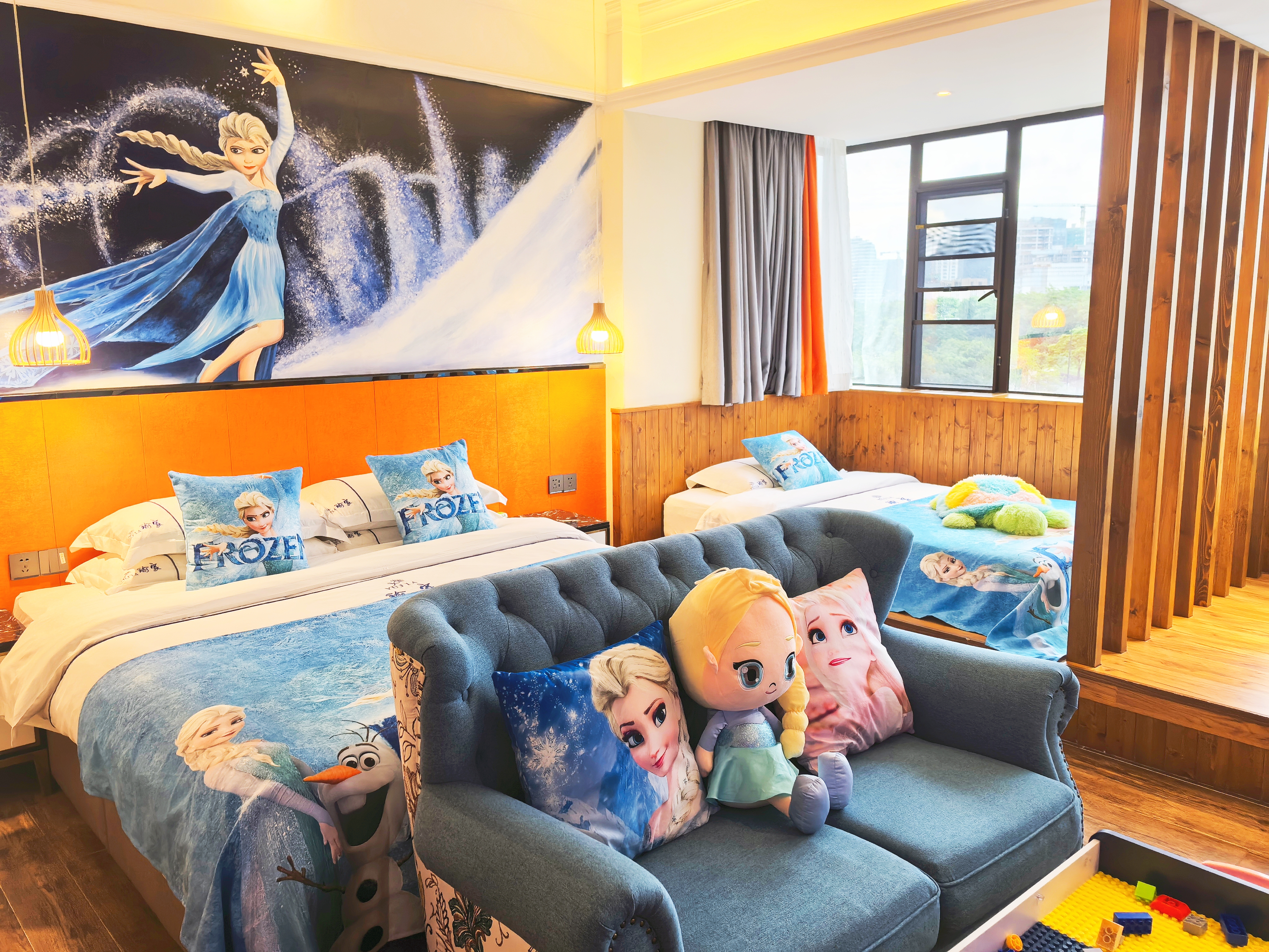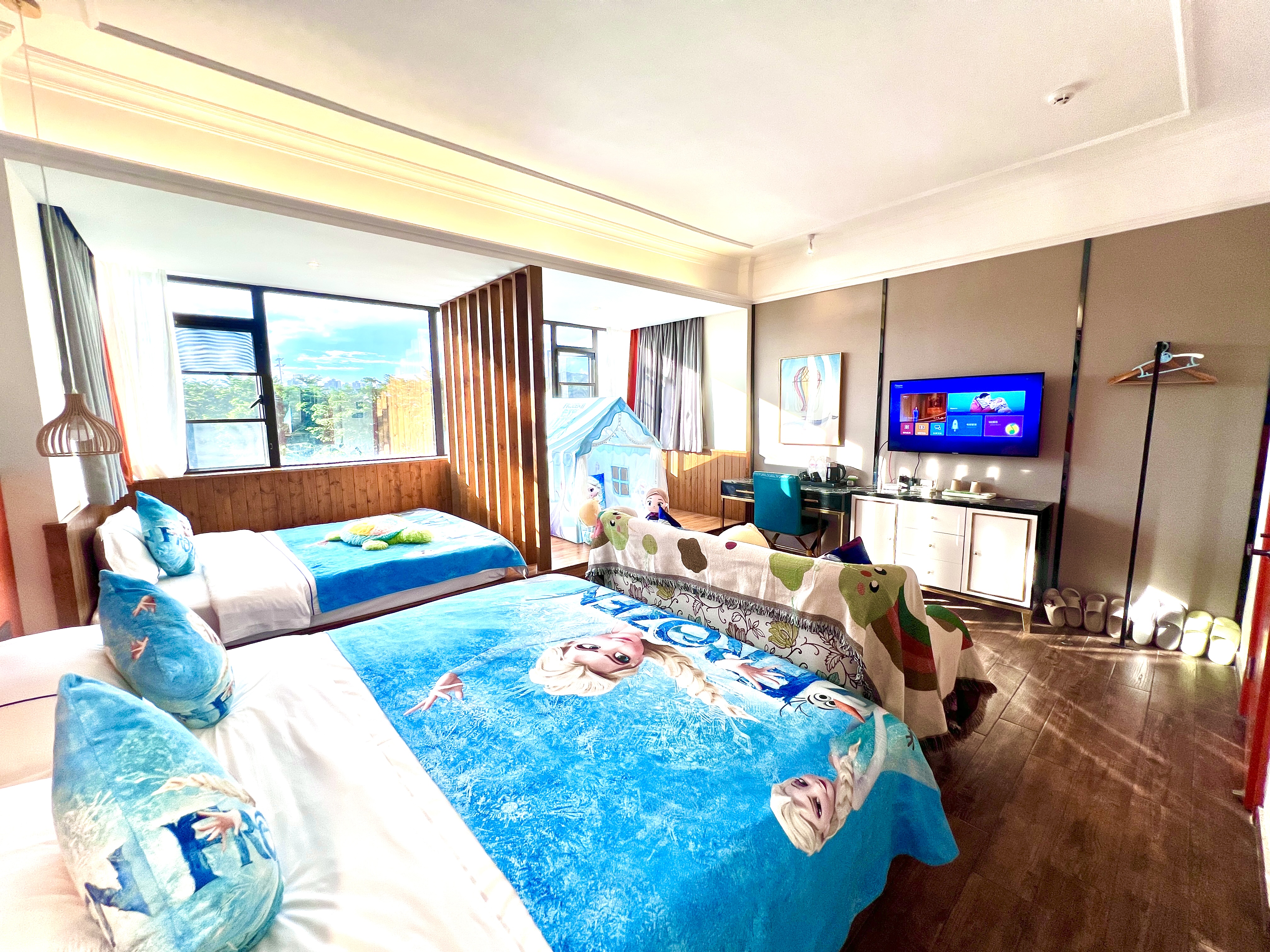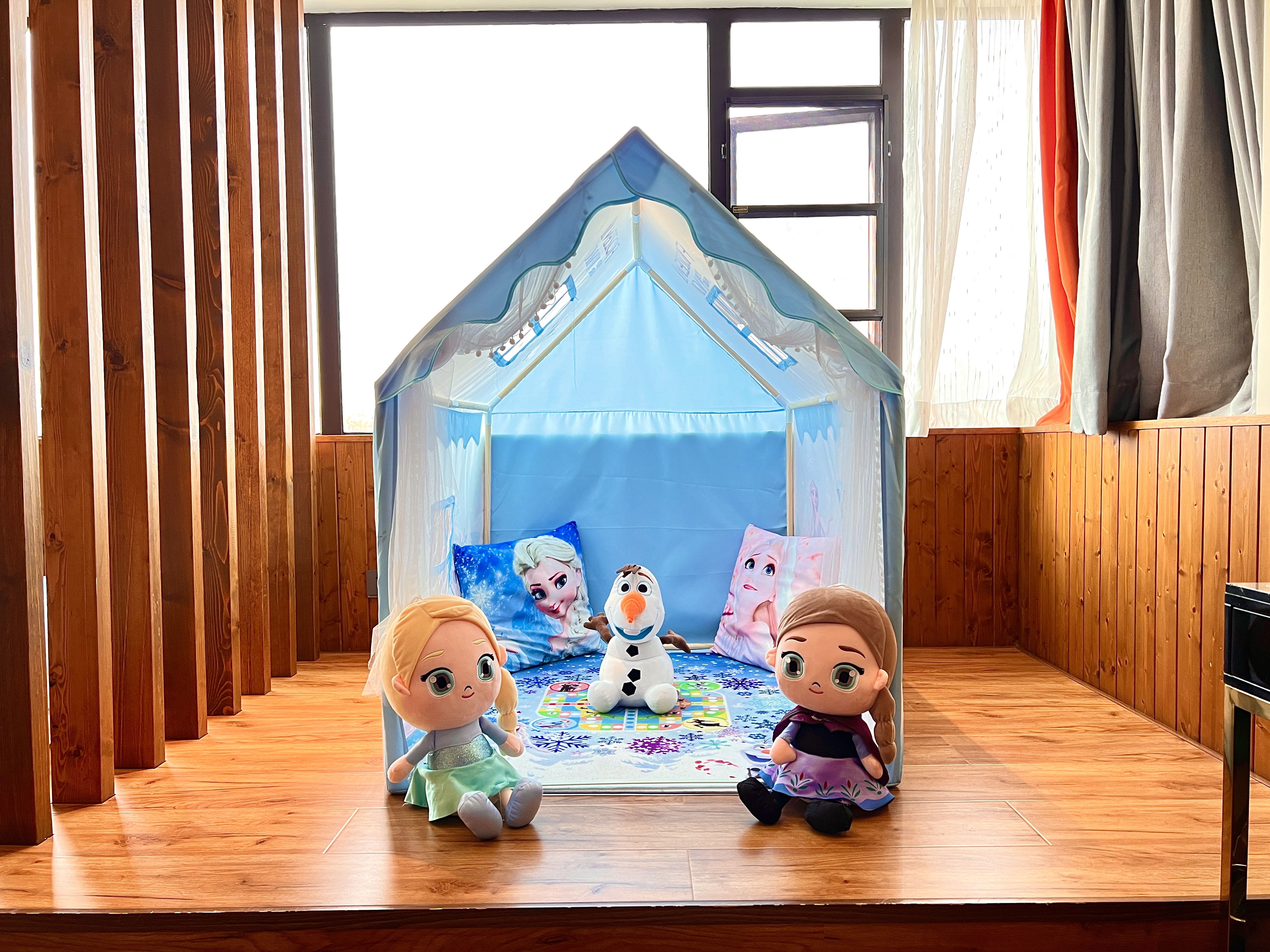 艾莎·公主亲子主题房(大空间+实木榻榻米+趴趴凳)