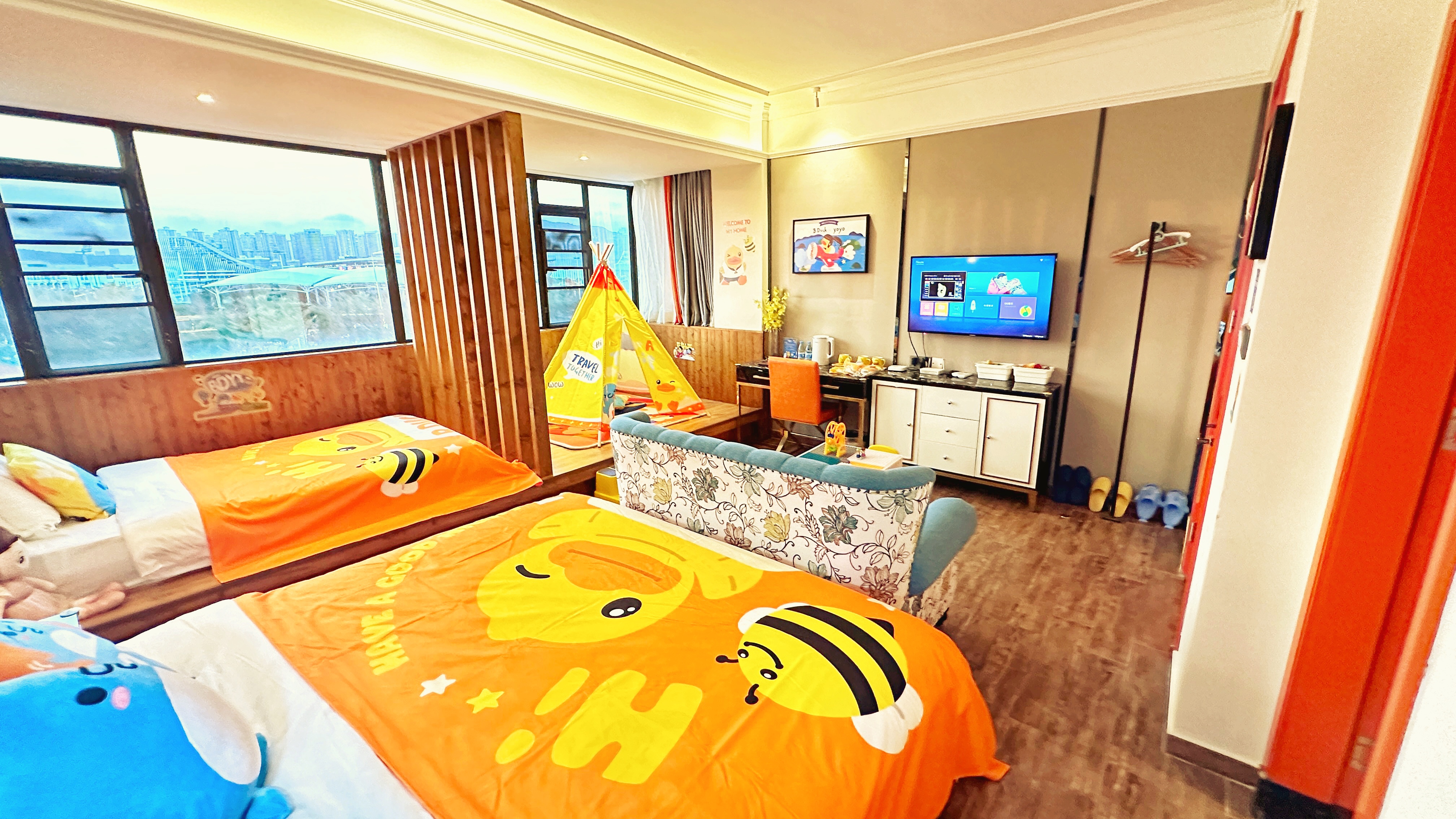 小黄鸭·亲子主题房(五口之家+帐篷+积木桌+烘乾机)