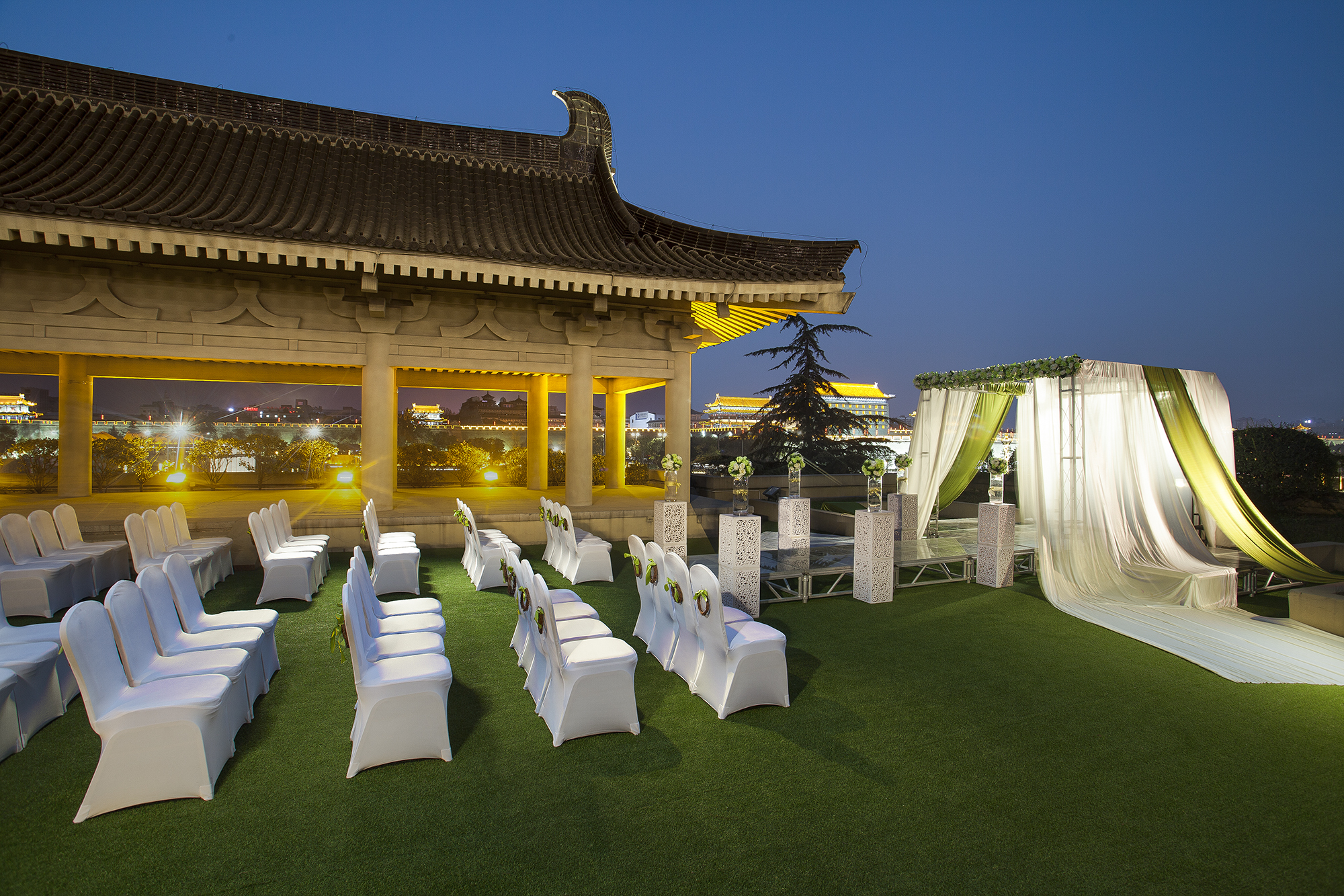 本酒店位於十三朝古都、世界历史名城—西安。酒店矗立於千年明城墙脚下。对望“文化国门”、“迎宾国门” — 永宁门,古都皇城的中轴礼序与南门商圈的时代芳华於此交汇, 面向世界书写 “长安永安”的盛世篇章。 本酒店是古城西安地标性建筑,独特的井乾式建筑结构、重檐庑殿顶式的建筑造型,气势雄浑、磅礴,获得中国建筑行业荣誉—鲁班奖。拥有诸多客房与套房,雅致静谧,抬眼可望青砖黛瓦、城墙古楼,周、 秦、汉、唐,千年华彩在此一瞬。钟楼、鼓楼、碑林、小雁塔等世界着名旅游景点近在咫尺,商业区、写字楼云集,地理位置十分优越。 本酒店拥有中、西餐厅,以及一间大堂酒吧,同时提供客房内用餐。酒店携同大景集团旗下精品咖啡—见木咖啡、精品茶室— 归景堂茶苑,穿越悠悠唐韵,您可品味都市精致格调。 在本酒店举行会议时,您将沉浸在古城西安浓厚的历史氛围之中。富丽堂皇的大宴会厅以及专为商务活动精心设计的七间多功能厅将为您提供完美的会议场地。别具一格的装潢,高档典雅。宴会接待处宽敞开阔,宾客可以一边享用鸡尾酒,一边进行轻松的交流。气势磅礴的无柱式大宴会厅-永宁殿,可同时容纳480人的会议。在璀璨夺目的水晶吊灯映照下,本酒店是您举行大型会议等重大活动的理想场所。一朝步入西安,一日读懂千年。深入体验历史名都,从酒店步行5分钟可达西安SKP、王府井百货和碑林区CBD商圈。搭乘地铁5分钟可达钟鼓楼广场,20分钟直达曲江大雁塔景区,驱车前往兵马俑博物馆45分钟左右。 酒店距离咸阳国际机场约40分钟车程,西安北客站约45分钟车程,西安火车站约20分钟车程。 “用匠心打造安然之所,用精细雕琢宁静时光”。让我们的真诚融入你的生活。