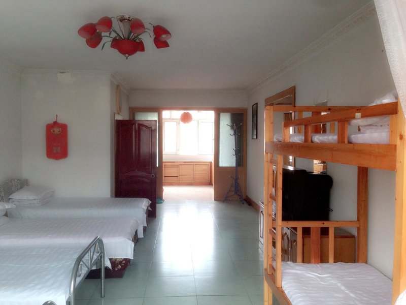 105平得家庭旅馆。三个屋,九张床,可住十一人,最多可再加两张床。适合自驾游家庭居住。室内采光好,都有大窗户,无隔断,夜间凉爽,几家人自驾游住这种房型最合适!请提前一天打电话预约!