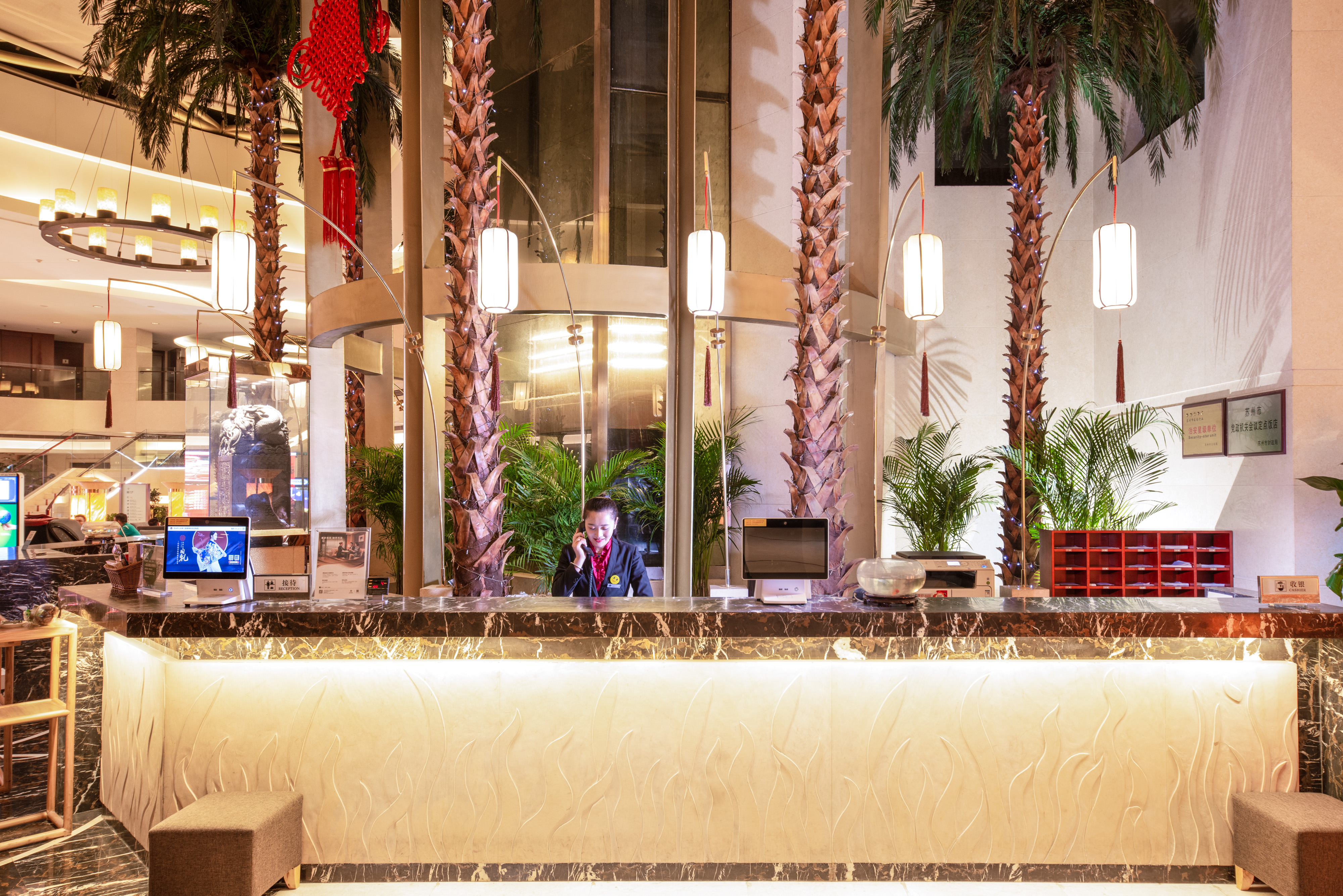 酒店位于古城核心地区,邻近5A级及世界文化遗产景点,为商务及全球旅游者提供一个理想的下榻之处。酒店位于苏州城市主干道上,地铁公交一应俱全。酒店大堂层高20米举目蓝天,面积达近千平米,堪称一景;用水打造的温情喷水瀑布外景及各项改进的设施已得到常客的首肯。酒店所有房间都配有E-MAIL接口、电子保险箱,大部份还有独立的淋浴间,更可提供10多个卫星电视节目。酒店餐饮包厢设计环绕大堂,情景交融,共享其趣其美其景,由国宴厨师组成的团队使每一位宾客都能领略到雅都淮扬菜系为主深厚餐饮文化。独立花园别墅及行政楼层独立、私密、幽静,宽大的液晶电视机及甜蜜梦想之床会令宾客的商务之旅疲惫顿消,恢复清爽。29楼旋转餐厅,中西式美食荟萃,古城任君鸟瞰,享至高格调。