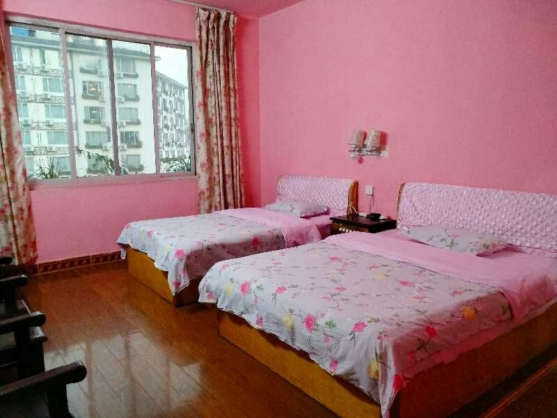 阳朔福彩宾馆座落于美丽的阳朔县,距举世闻名的洋人街——西街仅十分钟步行距离。周围田园风光秀美,闹中取静,停车方便,是旅游者理想的居住家庭宾馆。内设:三人间、标间,空调、彩电、无线上网,每个房间有独立卫生间、24小时热水淋浴等。经济实惠,干净卫生,安全舒适,宽敞明亮。酒店距离美食一条街仅一分钟的路程,周围有各种地方特色饭馆。干净,卫生,经济,实惠。酒店提供自行车服务和导游服务,让你以最经济实惠轻松的游阳朔。