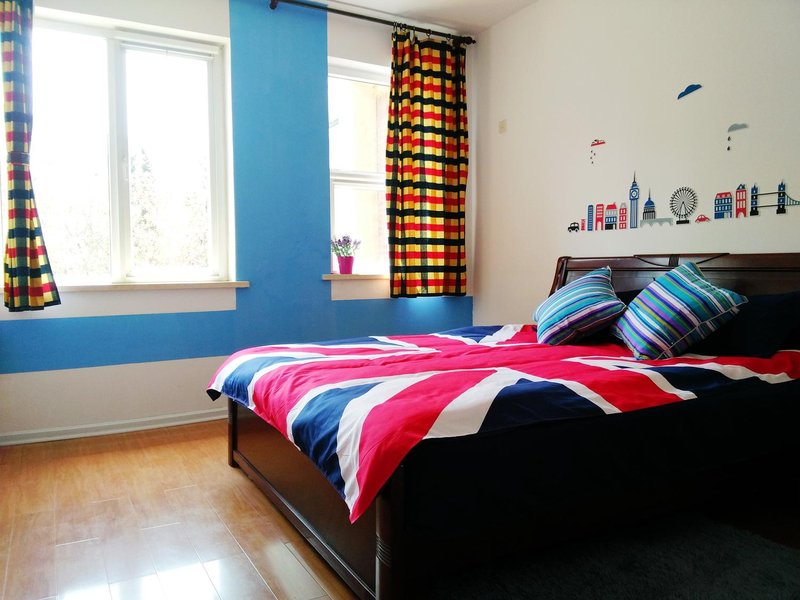 The house locates at the Golden Beach in Qingdao.We call it BOBO HOME,which is a home of yours at the sea for some days.I has a guard,where you can see the sea when the weather is very god.It is sea style.from outside to inside the color is blue and white.You can feel the sea in the house.It will take you 12 minutes to walk to Golden Beach.The guard is big,children can have fun in the swing or bicycles.The house is big too,there are 3 bedrooms,one living room and one dinning room.Besides there is big kitchen and two bathrooms.It is a home,so you can cook or wash as you like.The bicycles and camps can be rented too.If you like you can have a barbecue party in the guard with your family or friends...Come to Qingdao and live in BOBO HOME.It is our home at the sea and full of your sweet memories.