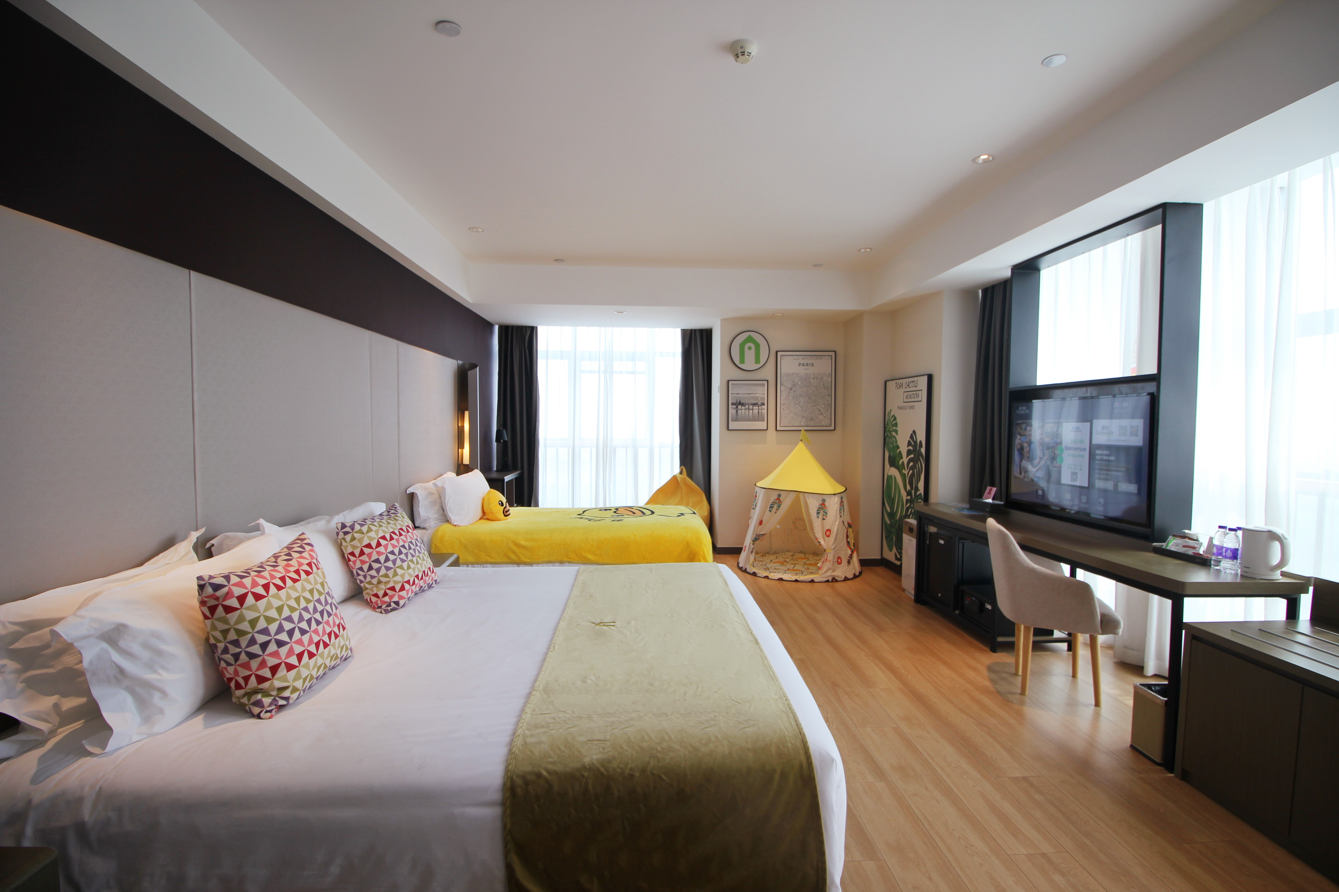 小黄鸭家庭房-欢乐亲子+空气净化器+城市景观+智能客控+迷你冰箱