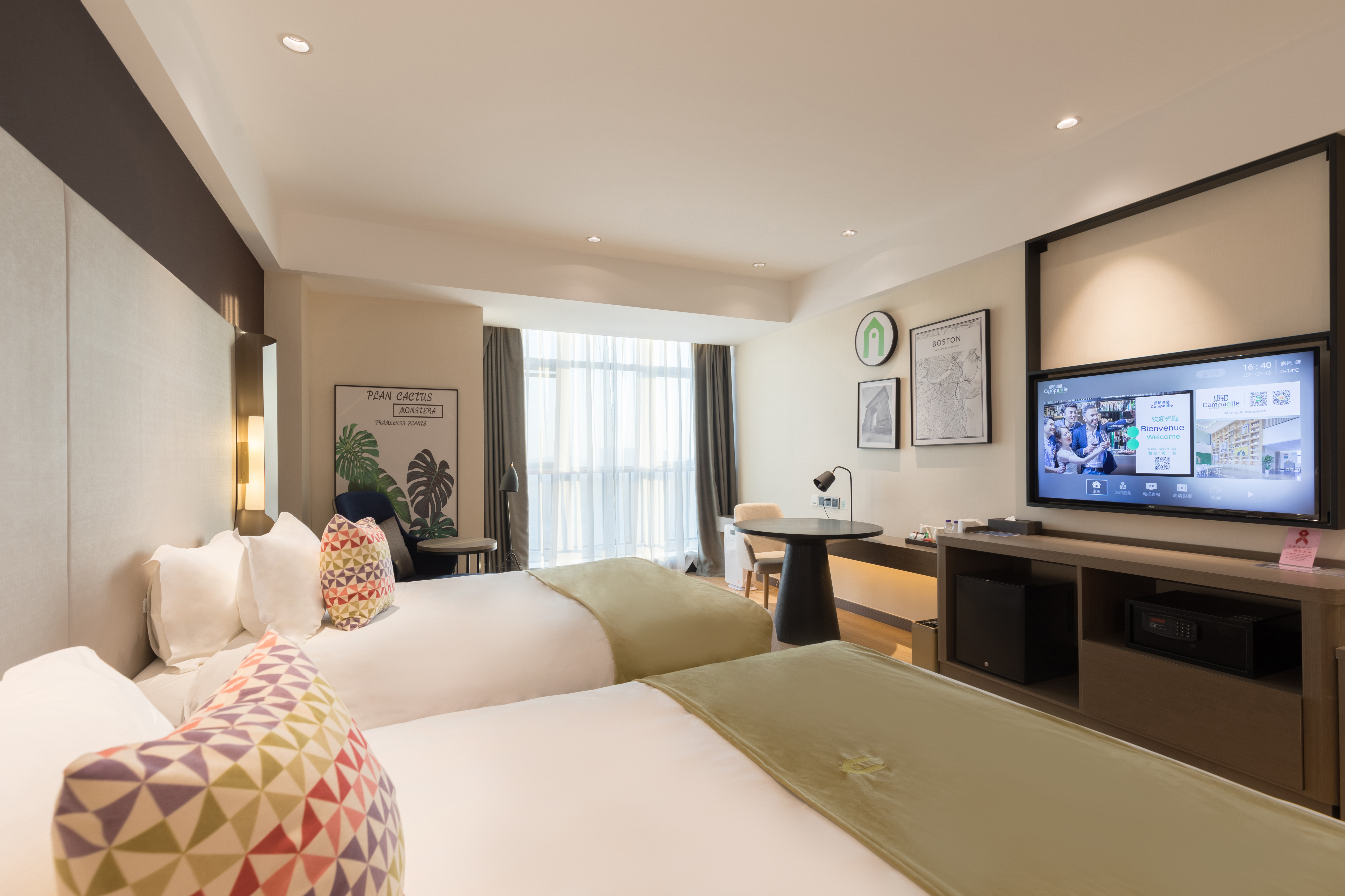 心享观景双床房-商务办公室+智能客控+城市景观+迷你冰箱