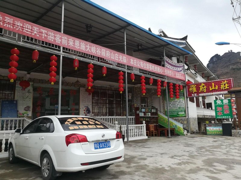【罗府山庄】位于湖北省恩施土家族苗族自治州.恩施大峡谷境内.离大峡谷游客中心两公里.游客可致电山庄安排接送服务,房屋是四合院.共三层.1000平方米.标间客房有24间.单间4间.3人4间.房间内设空调.智能电视.卫生间.WIFI上网等等.房屋前后是大型环保监控停车场.本庄于今年5.1号开业!一直保持游客来如往返....本庄让每位游客吃得放心!住得舒心!玩得开心!