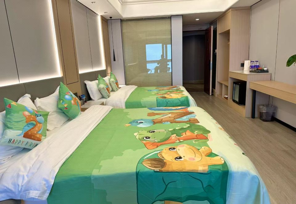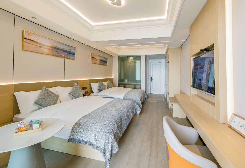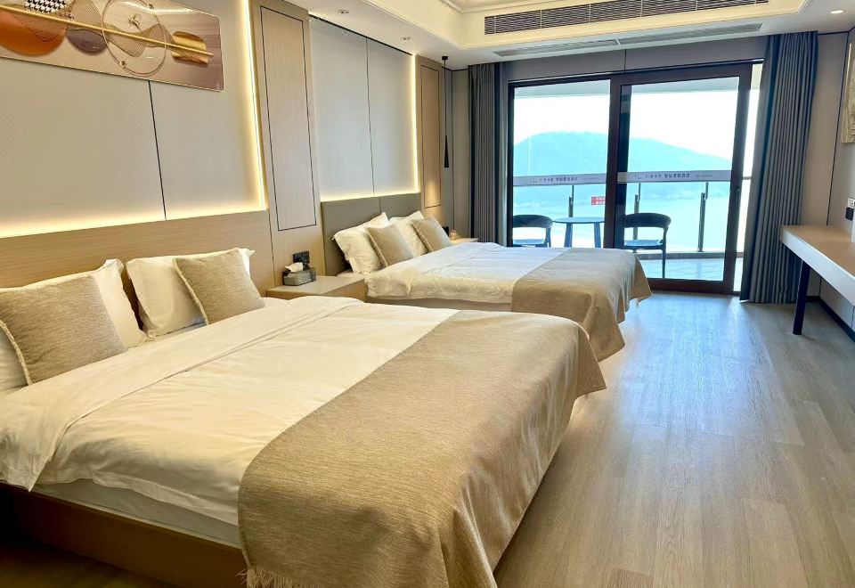 温馨亲子双大床家庭房(智能声控+一线海景阳台+冰箱)