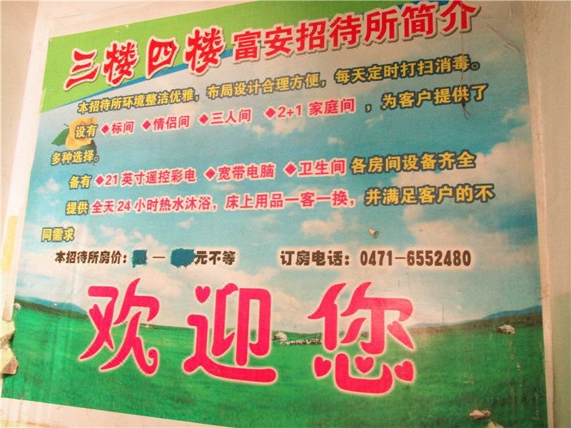 呼和浩特富安招待所客房预订: +8620-86009099 (电话忙线或无人接听时,请在线预订!)