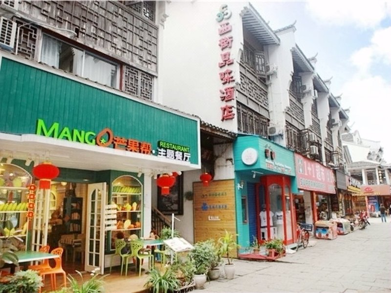 阳朔西街品味酒店位于西街民俗风情街,东连西街口、西邻汽车站,北与著名的百乐来饭店共享西街唯一的园林。