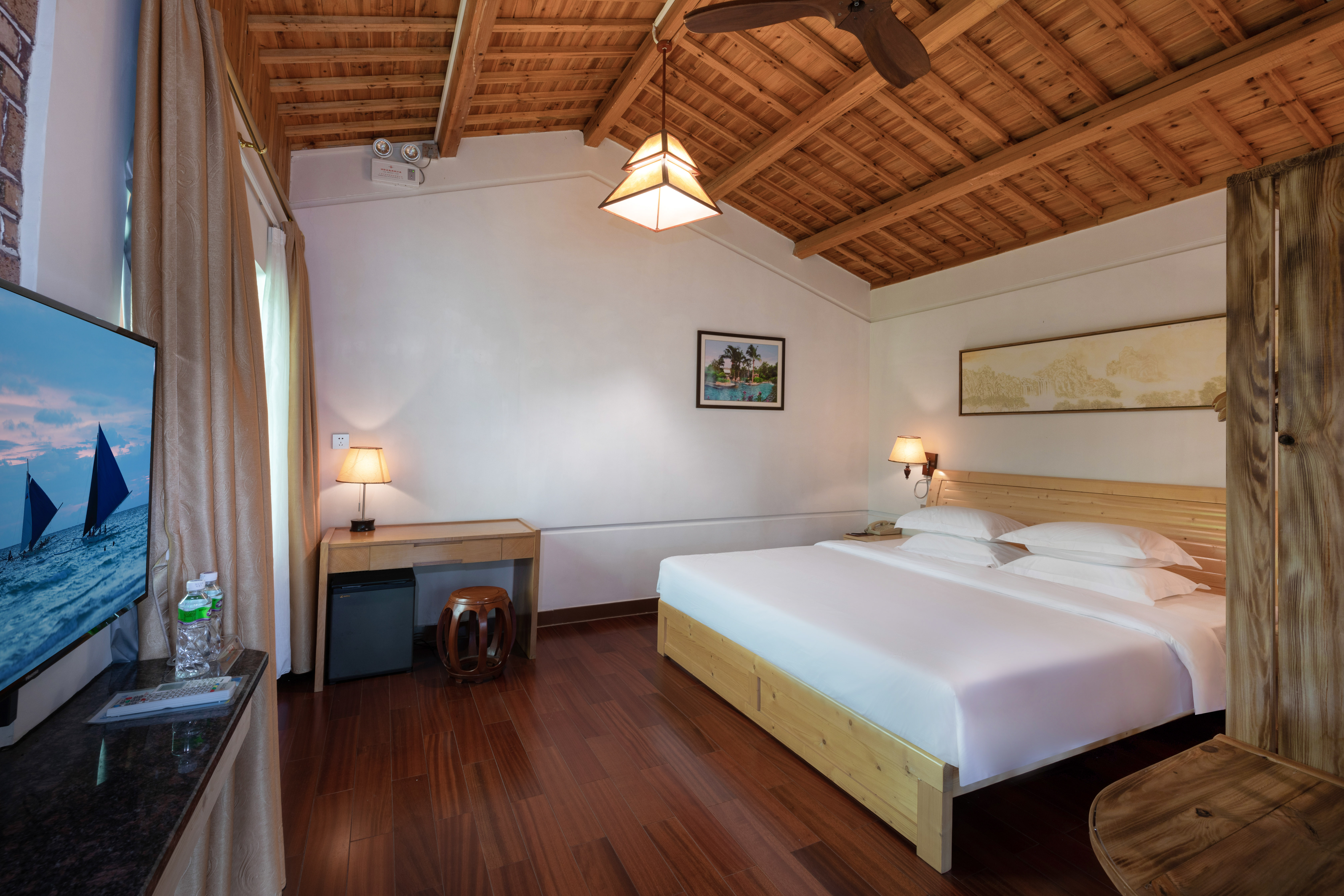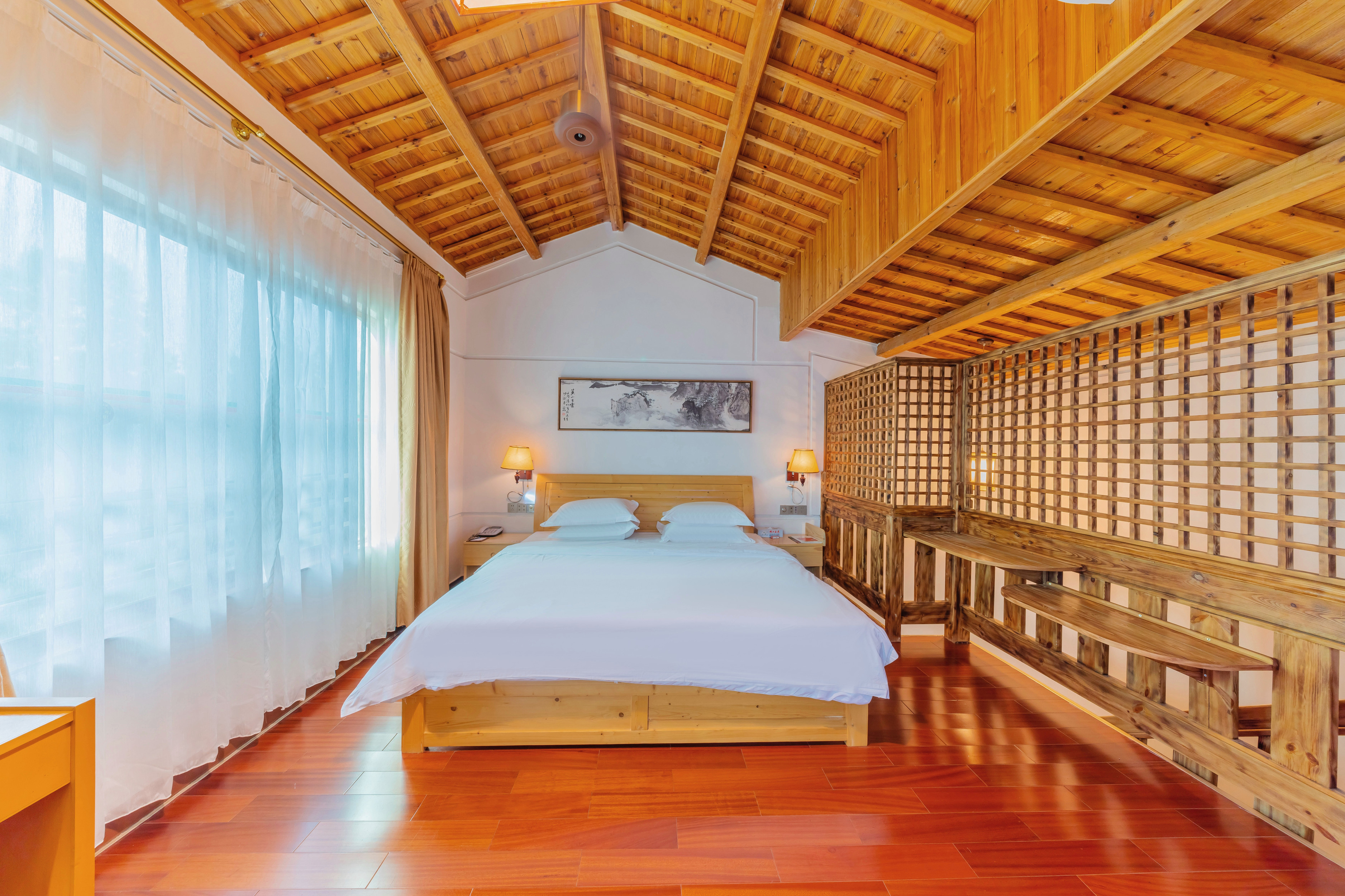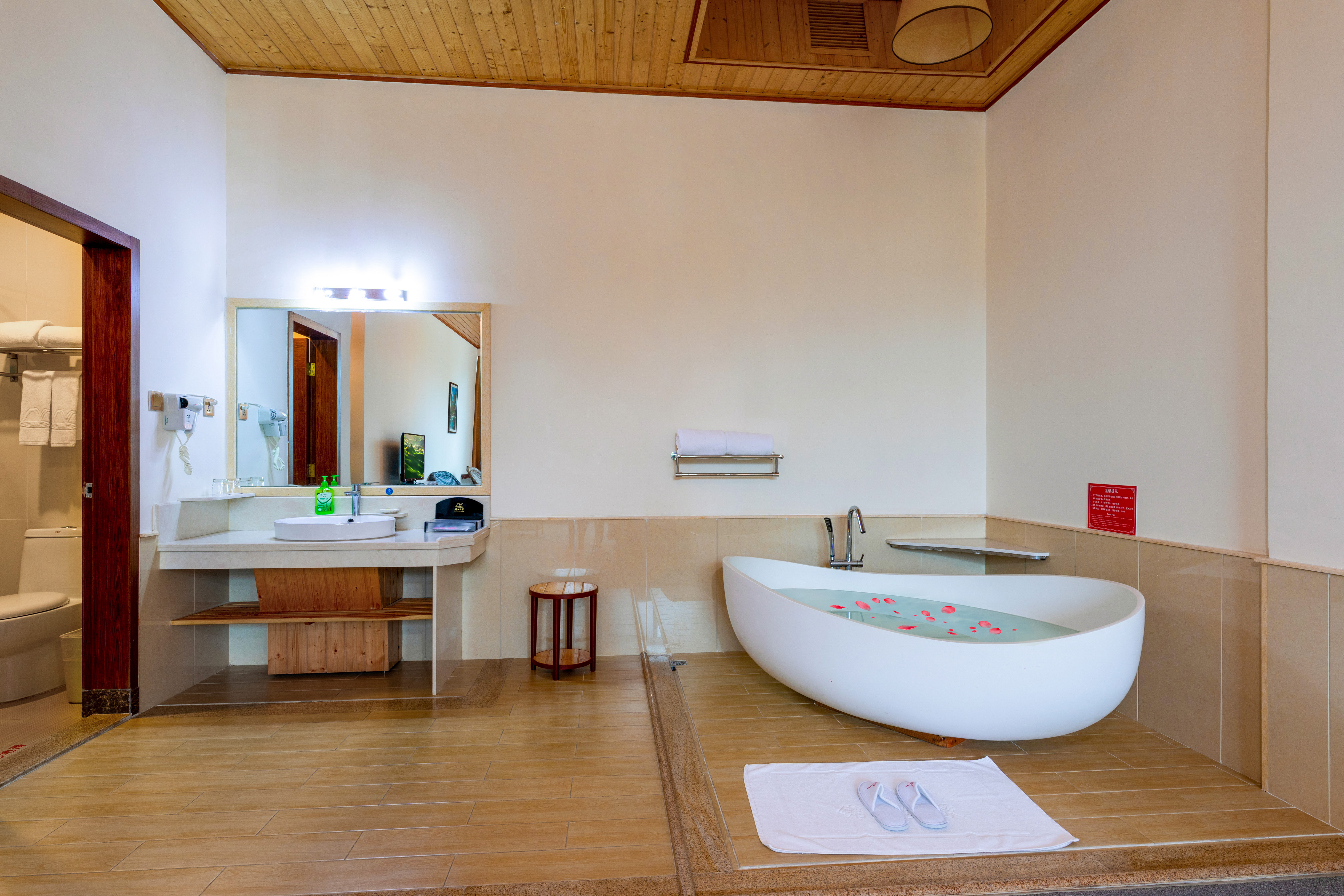 温泉区-君怡大床房|温泉浴缸|坐卧两用木沙发