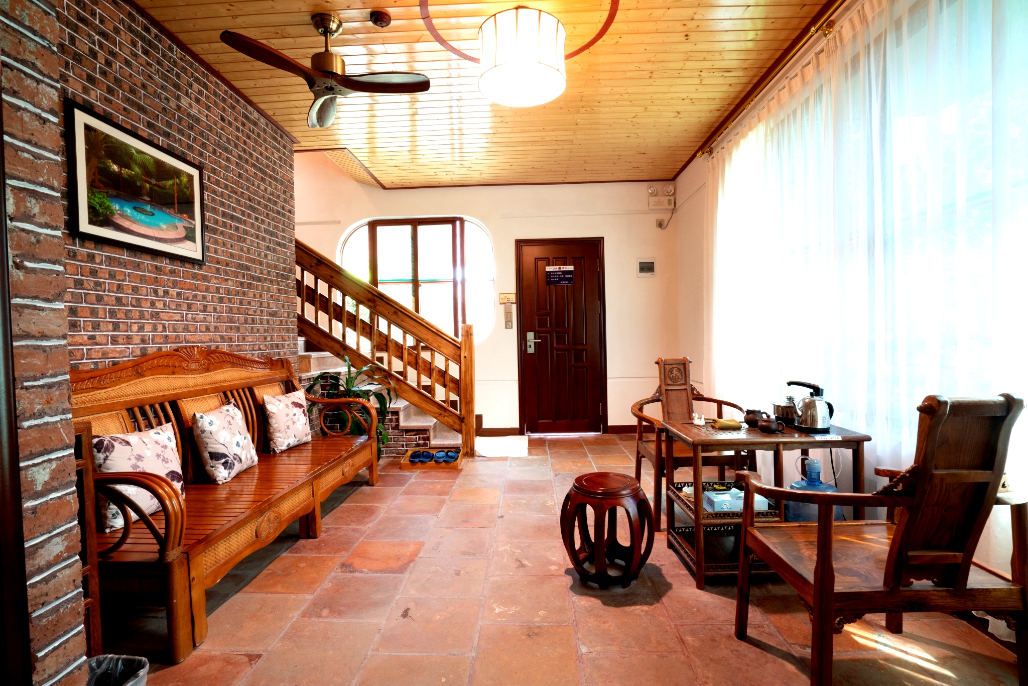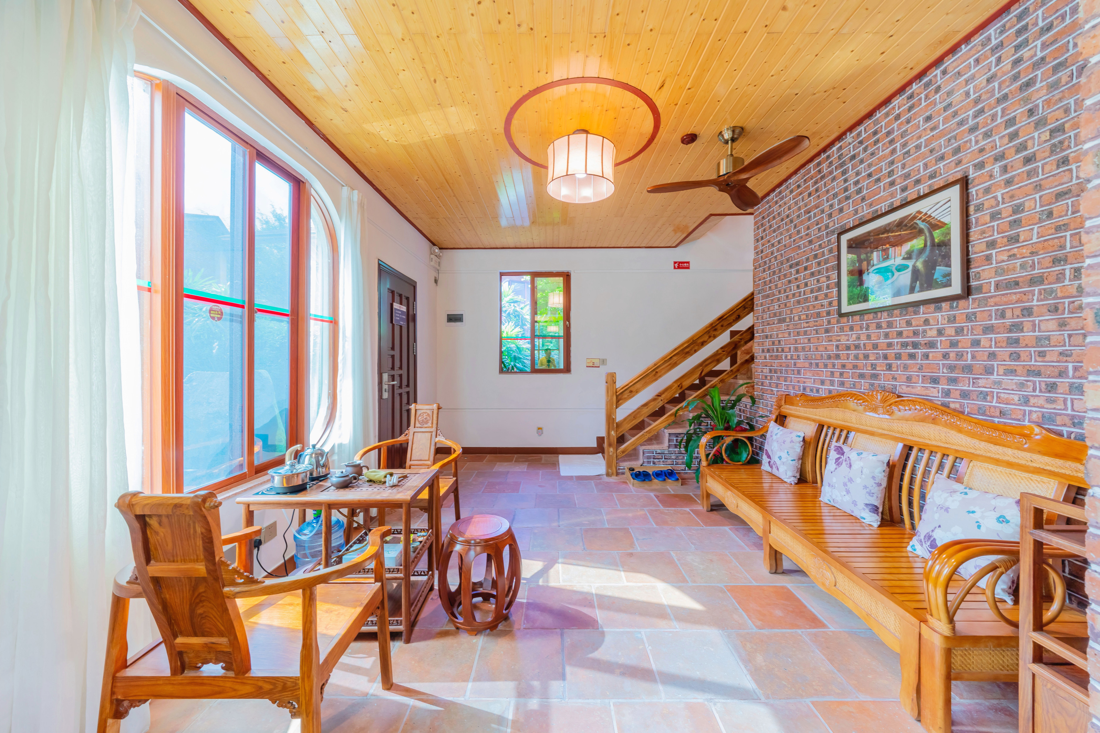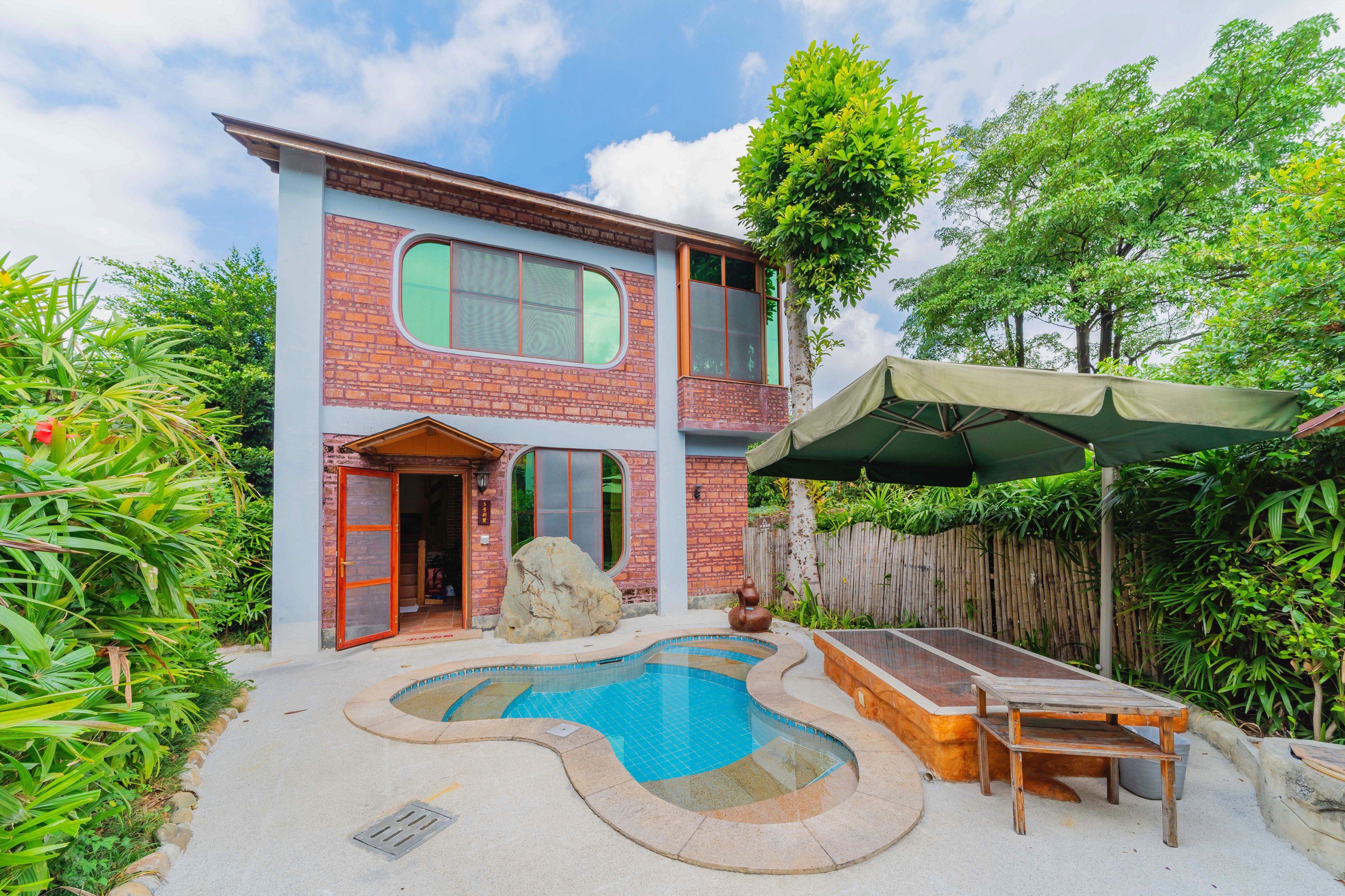 聚泉湾复式一房一厅别墅|私家泡池|热炕床|私家花园|坐卧两用木沙发