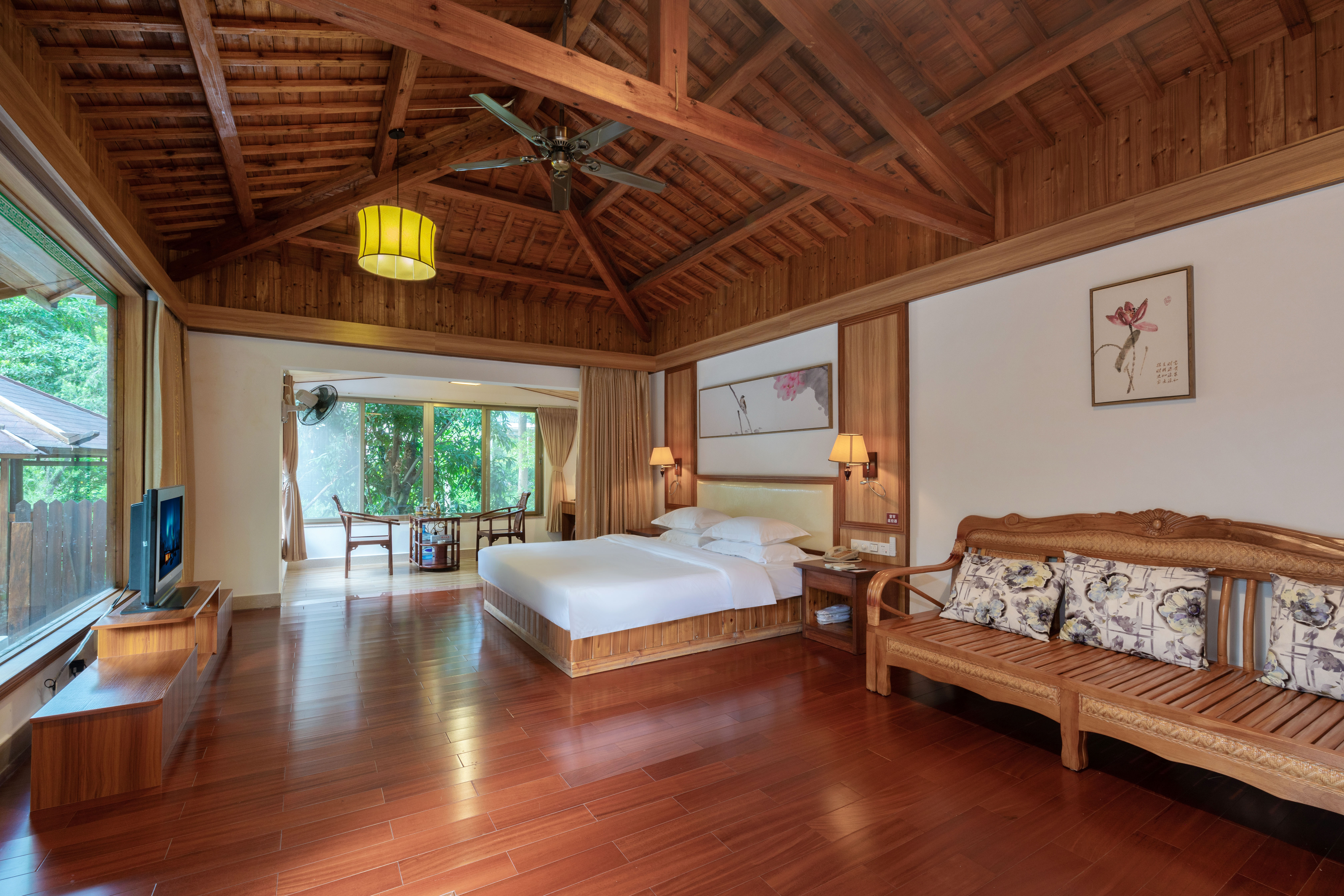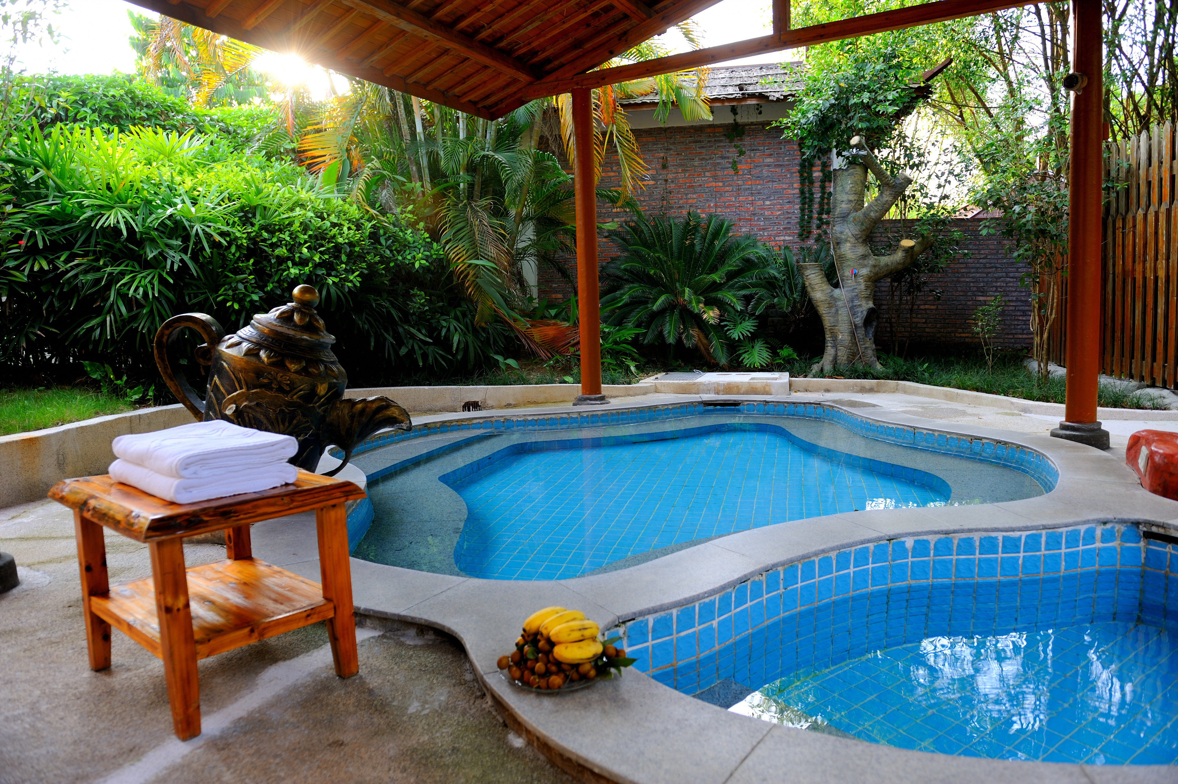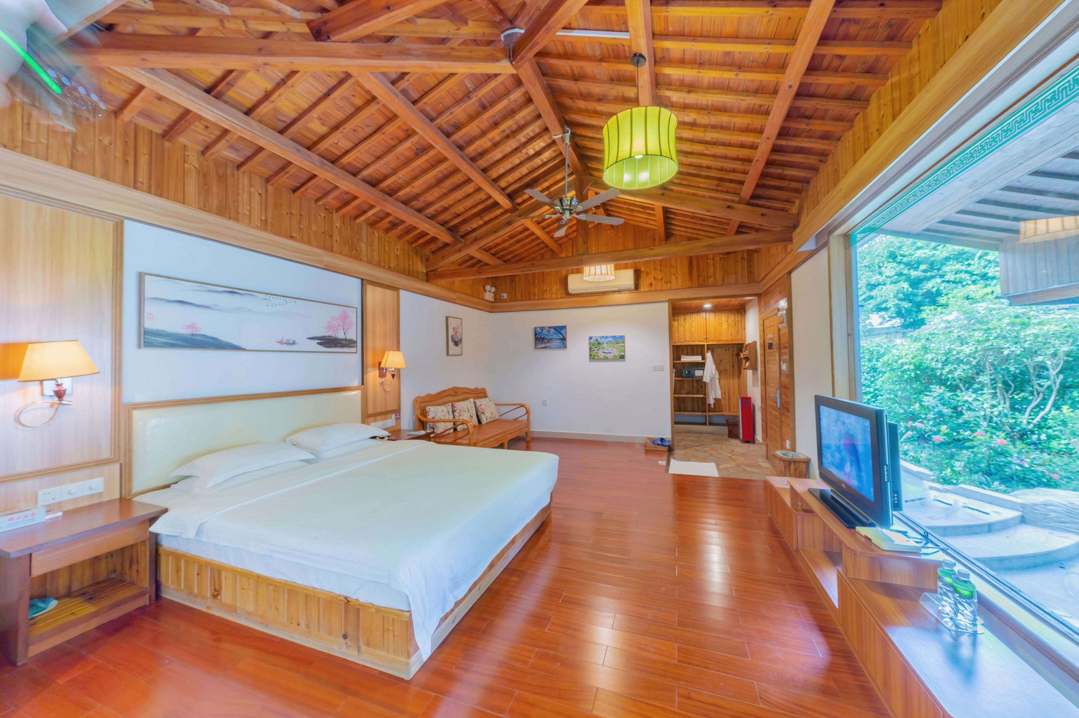 元宝岛一房木屋别墅|超大私家泡池|私家花园|热炕床|坐卧两用沙发