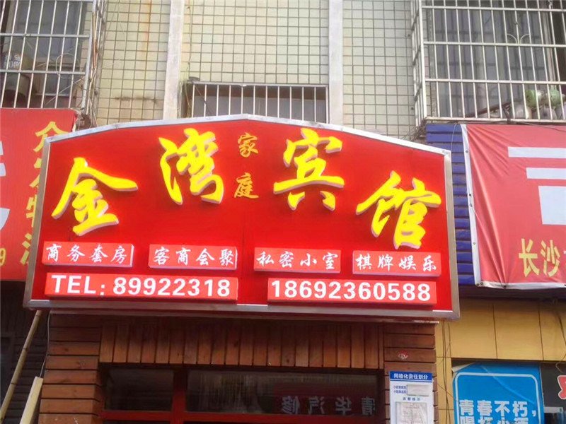 精装修民宅,星级享受,宾馆价格。您可以象家一样做饭,无宾馆查房之忧。卫生,安全,舒适,自由。金湾家庭宾馆座落于长沙市高铁南站3.5公里内,长沙黄花国际机场18.5公里,30分钟即到。附近就有公共汽车站台,长沙大道地铁2号线,到高桥市场,芙蓉广场,五一大道,湘雅医院,黄兴步行街等都只有几站地路程,周边商场林立,餐饮、文化、娱乐设施齐全,环境优越,出行方便。24小时热水淋浴和电子监控,空调、电视和免费宽带上网等设施一应俱全,价格实惠公道。可叫外卖进房等。更有家人般贴心周到的服务,床上用品一客一换,入住前有专人全面保洁,让你拥有一个干净、温馨的住宿环境。