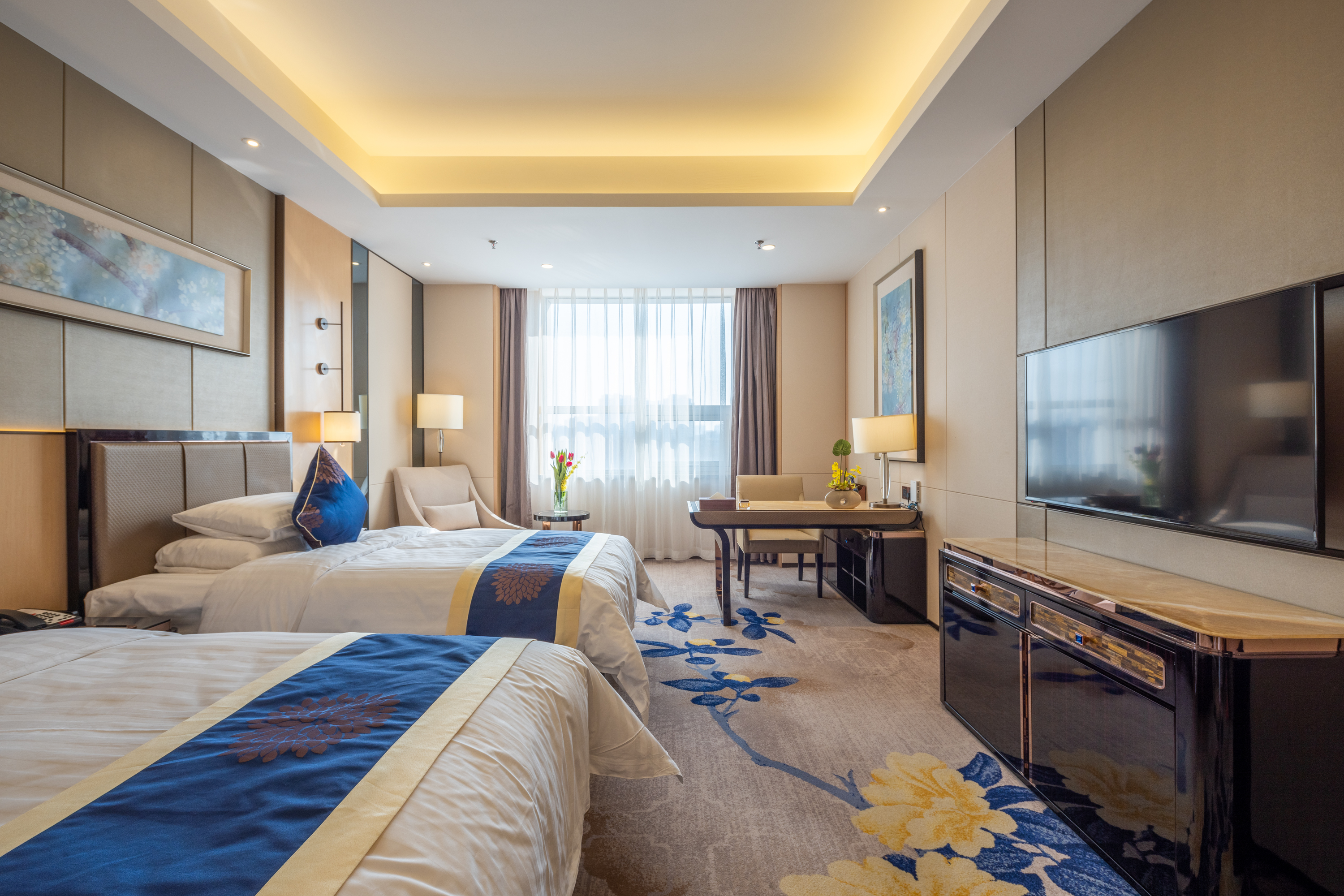 包头青山宾馆迎宾楼内设298间客房及套房,舒适的“金可儿”定制寝具为您褪去一天的疲惫,大理石打造的豪华浴室中,干湿分区让使用更舒适。置身房间远眺,视野开阔,秀美园林一览无余。