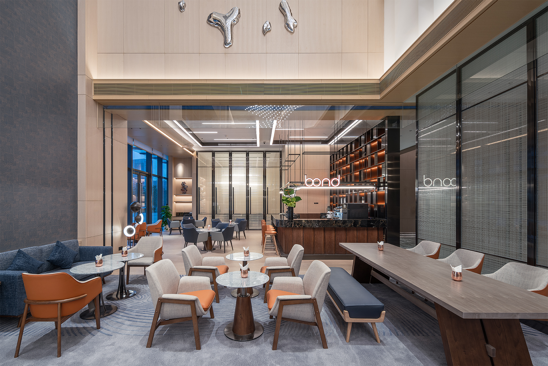 一进广州星河吉酒店,就步入集聚会、休闲和商务功能于一体的大堂,岭南气息铺面而来!整个大堂不会给人特别硬朗的感觉,简约舒适,温暖柔和,这也契合了吉酒店的核心价值,友好地以岭南文化拥抱每一位来访者。