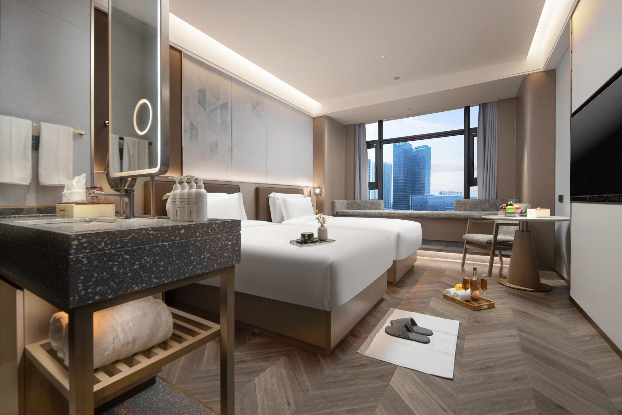 Elegant River-View Twin Room (Smart Control&Smart Toilet + Xiang River Scenic Comfort)