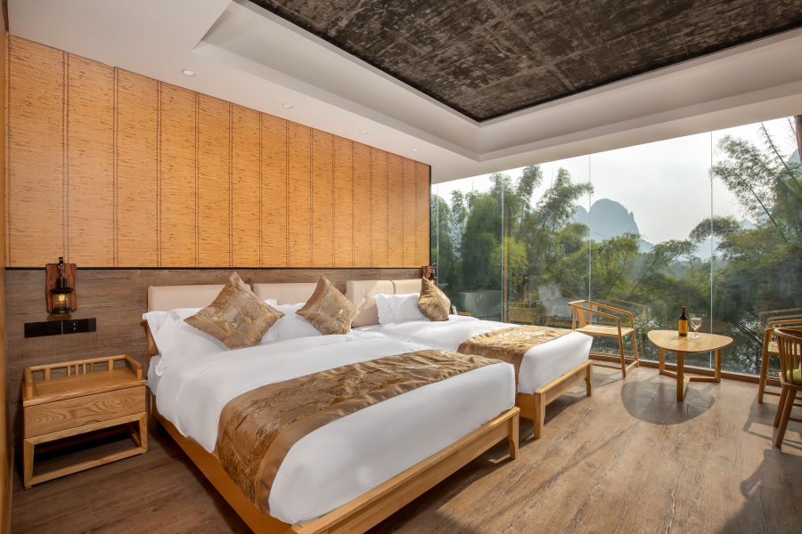 躬行社·栖迟山居(阳朔兴坪店)位于20元人民币景区,漓江5A景区精华段。一线漓江江景,户户270度瞰江景落地玻内阳台。映入眼帘就是一副水墨山水画卷。黄布倒影、九马画山、兴坪古镇、漓江竹筏就在身边。躬行社·栖迟山居(阳朔兴坪店)是一家极富特色的精品度假酒店。? “愿你一生有山可靠,有树可栖,与心爱之人,春赏花,夏纳凉,秋登山,冬扫雪。”住在栖迟山居、住进风景里。酒店屋顶特设“天空之镜”,让住店客人融入这仙境,留存这份美好。酒店建筑装修皆为资深设计师作品。古朴、雅致与唯美,又融合了世界潮流的舒适温馨。所有客房均按照超高标准配置,全景落地窗、一线观景浴缸、配备了冷暖中央空调、24小时热水、免费WIFI、乾湿分离衞浴,智能马桶等。既有简约时尚的舒适,又有山水乡情的难忘体验。栖迟山居秉承待客人如亲人的服务理念。来到栖迟山居的家人们,就像回到家一样。早餐,下午茶,助眠饮品,mini吧小食品,欢迎水果,伴手礼……都是免费赠送的。你可以在房间、在露台练习瑜伽、看书、小酌、发呆……或者跟我们一起烹饪、泡茶或打太极等,还可参加乡间自行车、徒步等户外运动。相公山,老寨山,都近在咫尺,享受这不可多得的人间仙境。