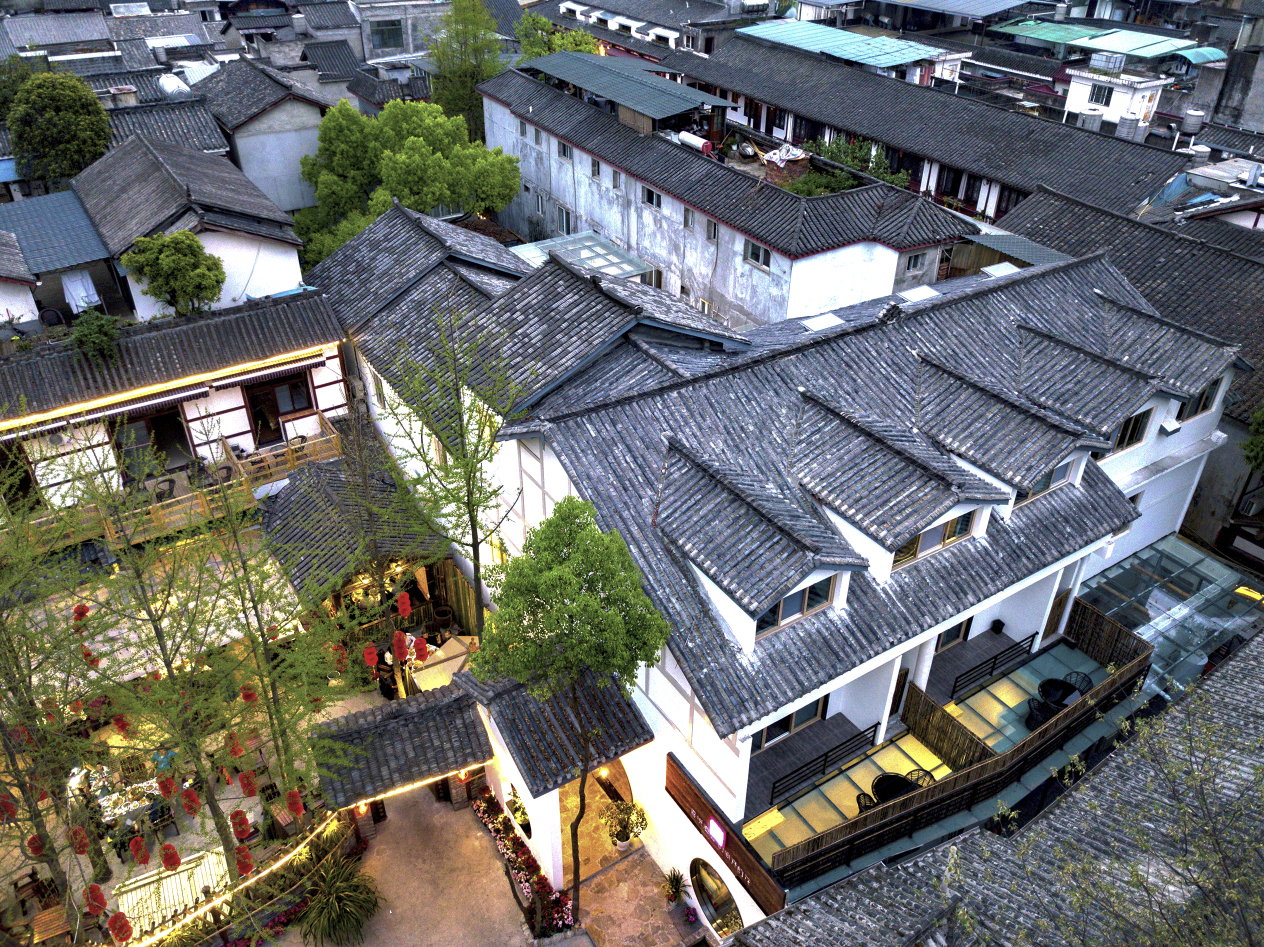 酒店坐卧于青城山脚下街子古镇内,是一家休闲、旅游、观光于一体的度假民宿,在这里可以感受到时间的质感,气候宜人、环境优雅、景观别致。虽是现代化酒店却一点不与古镇的烟雨气息相冲突;觅之喜悦意起金宇澄先生的《繁花》,意为寻觅良久终至此地,欢愉之悦油然升起。整体的设计风格融入了格非先生的江南三部曲《人面桃花》《山河入梦》《春尽江南》踏进觅之喜悦的时候,有种穿越到江南水墨画的错觉,精致的盆景,圆弧的轩窗,幽静葱茏的庭院让人顿时心生愉悦。