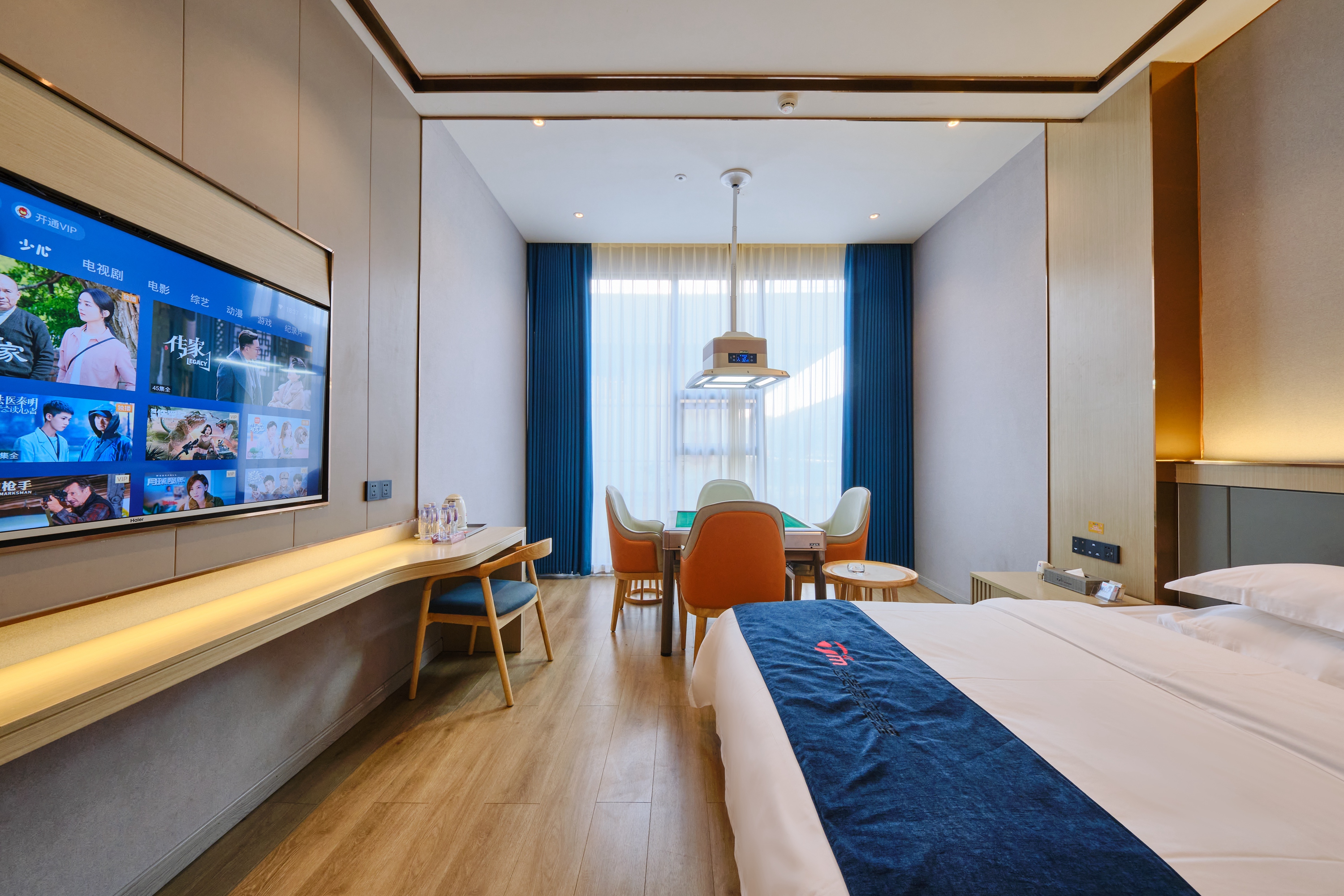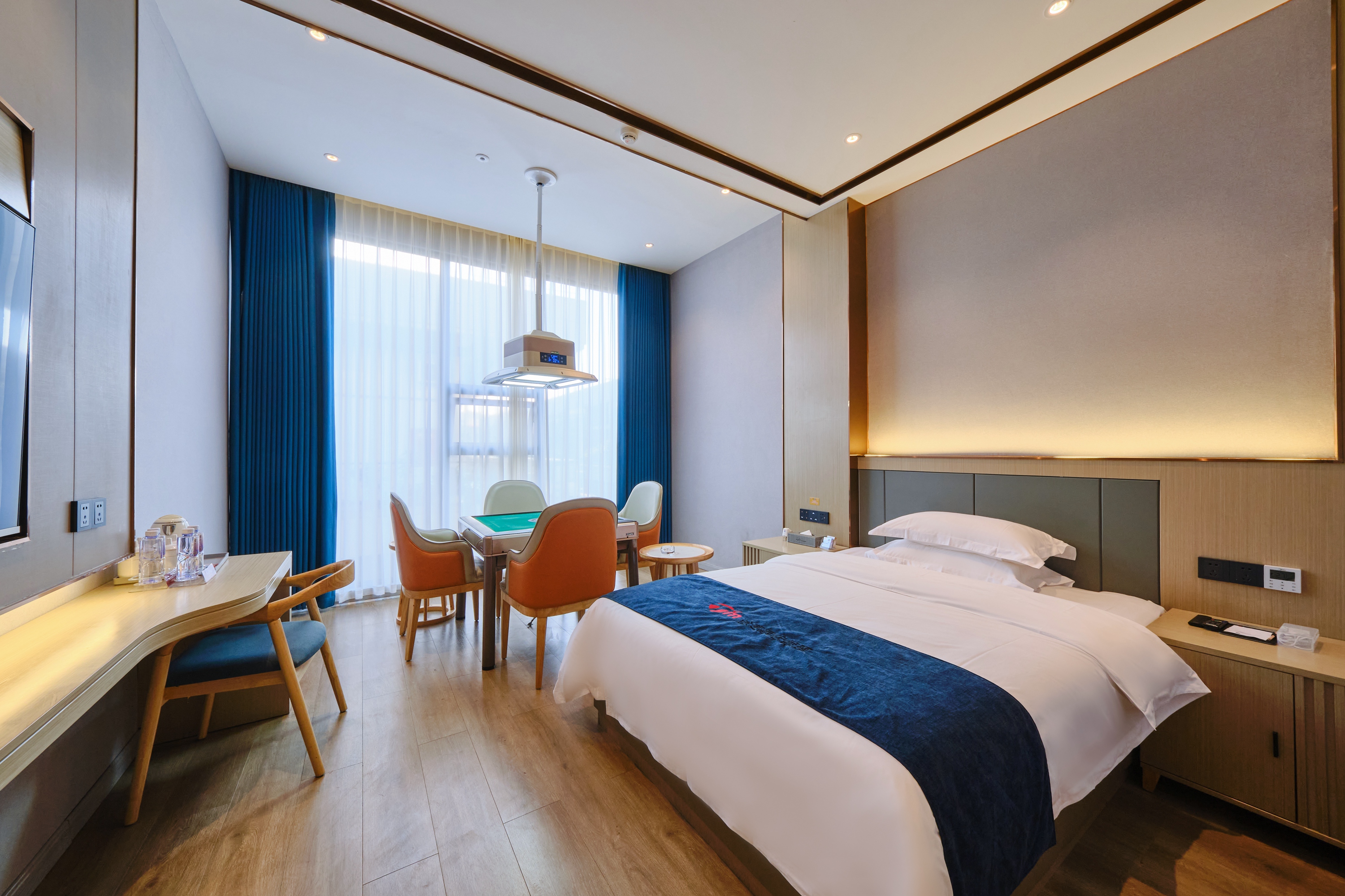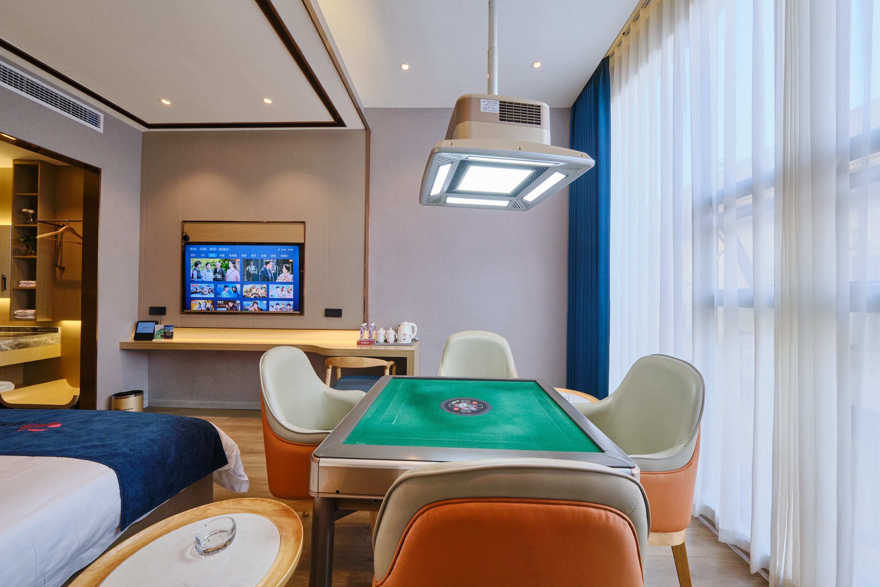 娱乐棋牌房《品牌床垫+64号玉石大麻将+落地大窗》