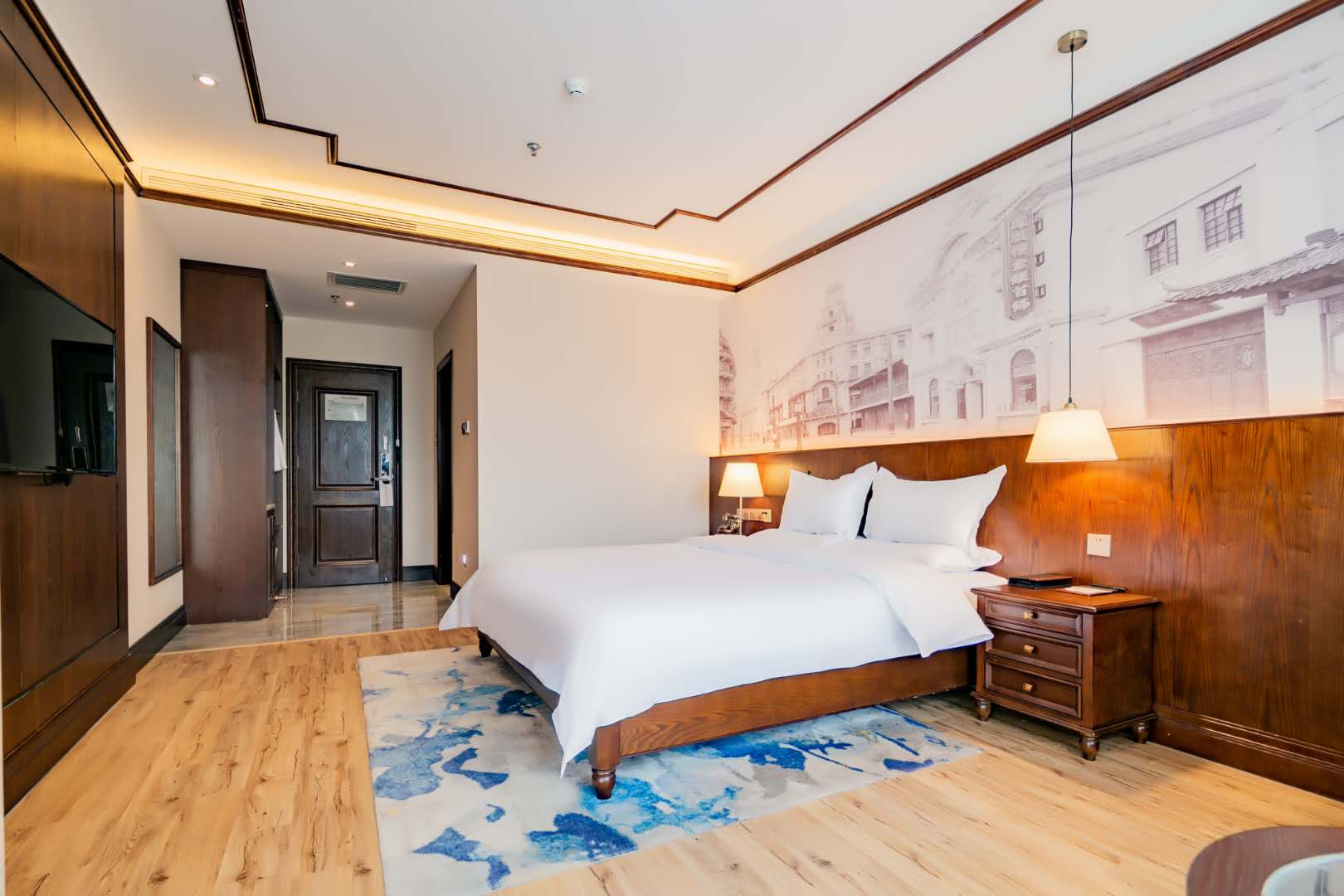 酒店位于古城西安碑林区长胜街3号(李家村万达广场2号门),紧邻地铁4、5号建筑科技大学·李家村站。酒店地处西安市核心商圈:万达广场、西安SKP、小寨赛格国际、地铁4号线直达大雁塔旅游区、小雁塔、西安明城墙、钟楼。 美仑酒店Madison属于华住旗下高端品牌,设计风格内敛雅致、低调奢华,室内装饰主要以民国风格为主。黄铜摆件、实木地板、全实木家俬等,无一不是对民国上流文化的优雅复兴。酒店同时配有早餐厅、免费洗衣房、健身房,满足客户的入住需求。优越的地理位置、舒适轻奢的住宿环境、便捷的出行,是您畅游古都、商务出差的不二之选!