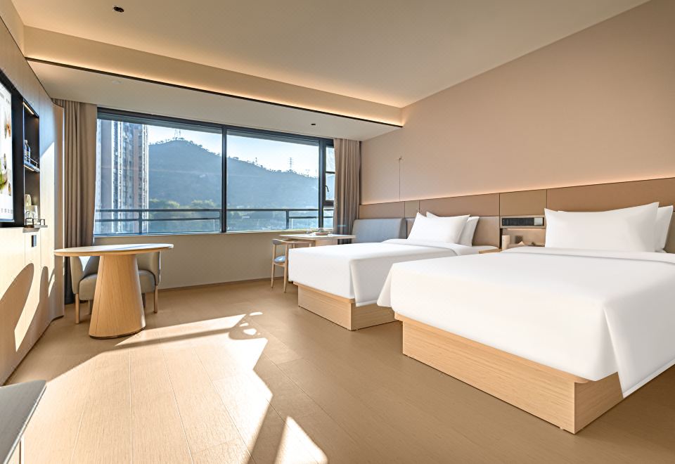 酒店为全季5.0产品,以朦胧留白的视觉感受、人文意趣的艺术作品、好闻的禅茶香氛、自然的音乐,为客人营造出一种自在松弛的氛围感。创新的茶空间,甄选源头好茶、搭配古法手作茶点,既能服务到酒店住客,为他们提供一处更体面、更私密的商务洽谈空间,也能为周边更多人提供一处临时办公、聚会休闲的场所。客房分区动线设计化繁为简,所需用品一目了然。Hello华住智能语音客控,轻松调节房间内设施,让旅人能够在舒适的环境里获得更充分的休憩。
