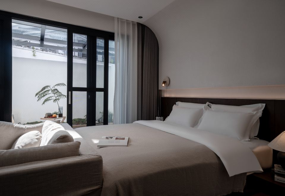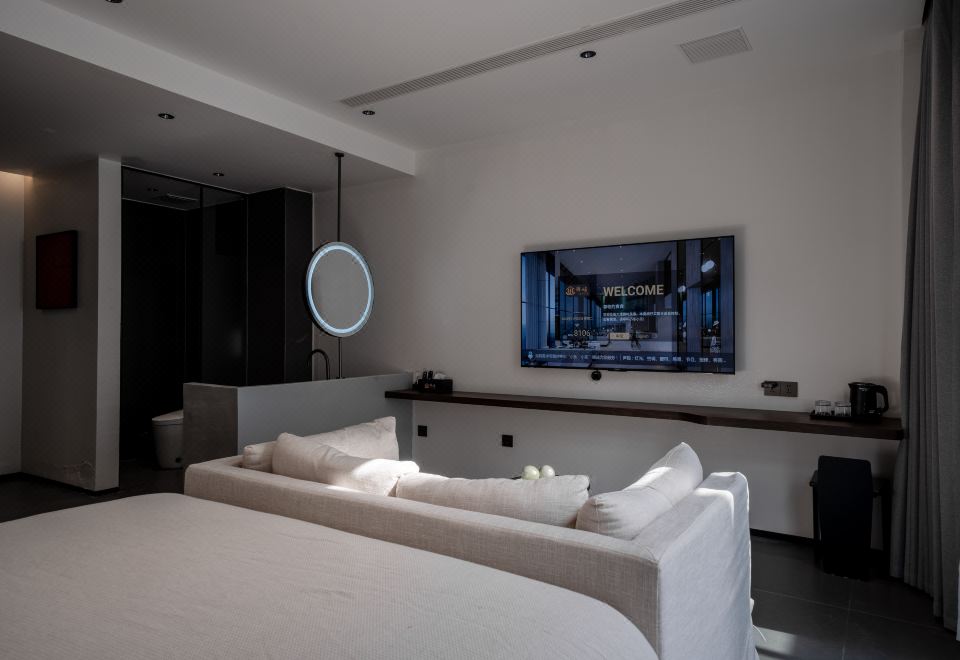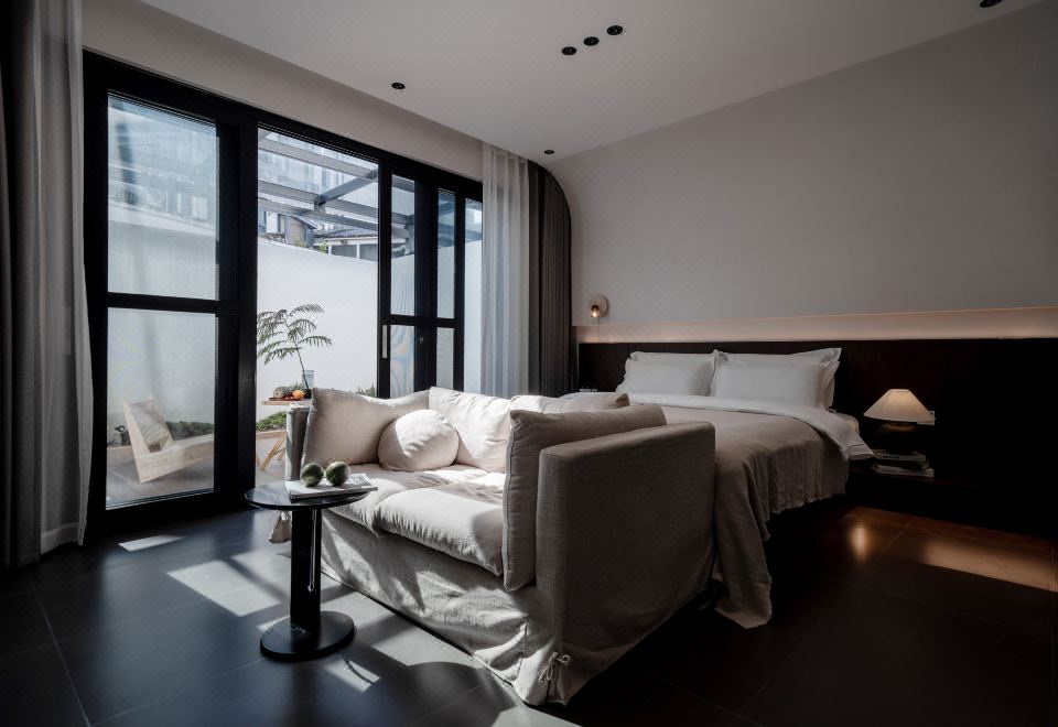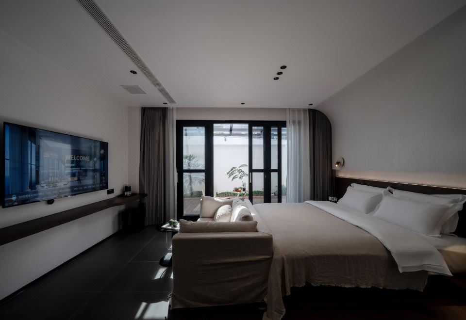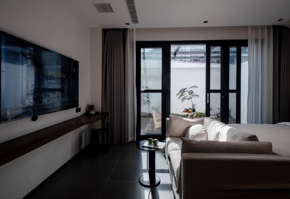 嶼·蘭秋丨私享庭院大床房【輕奢雙人布藝沙發+全屋智能客控+徠芬吹風機+長虹65寸AI語音智慧屏電視+智能馬桶】