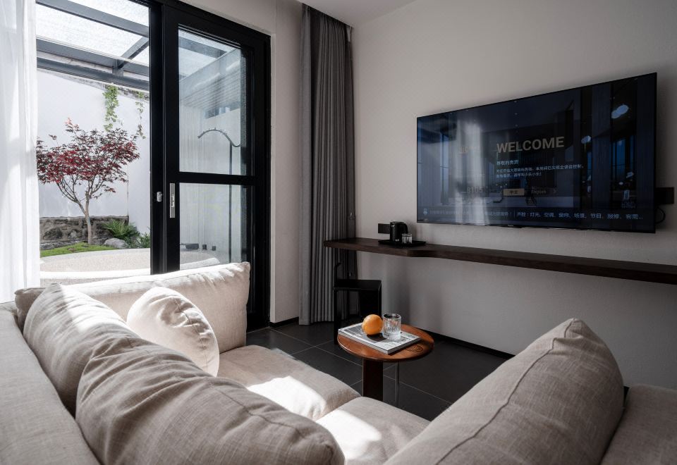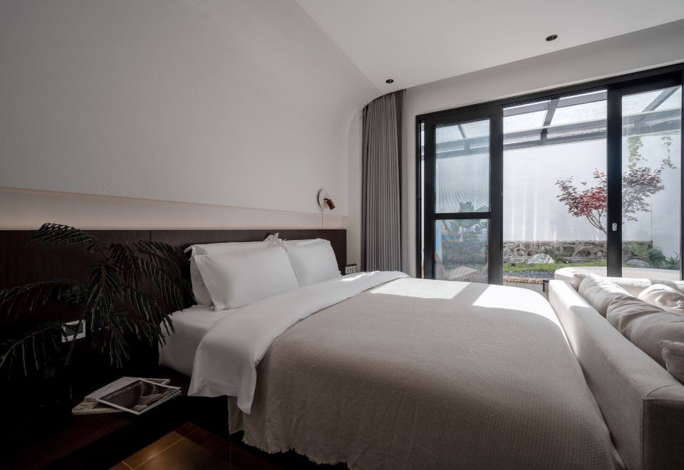 嶼·蘭秋丨私享庭院大床房【輕奢雙人布藝沙發+全屋智能客控+徠芬吹風機+長虹65寸AI語音智慧屏電視+智能馬桶】