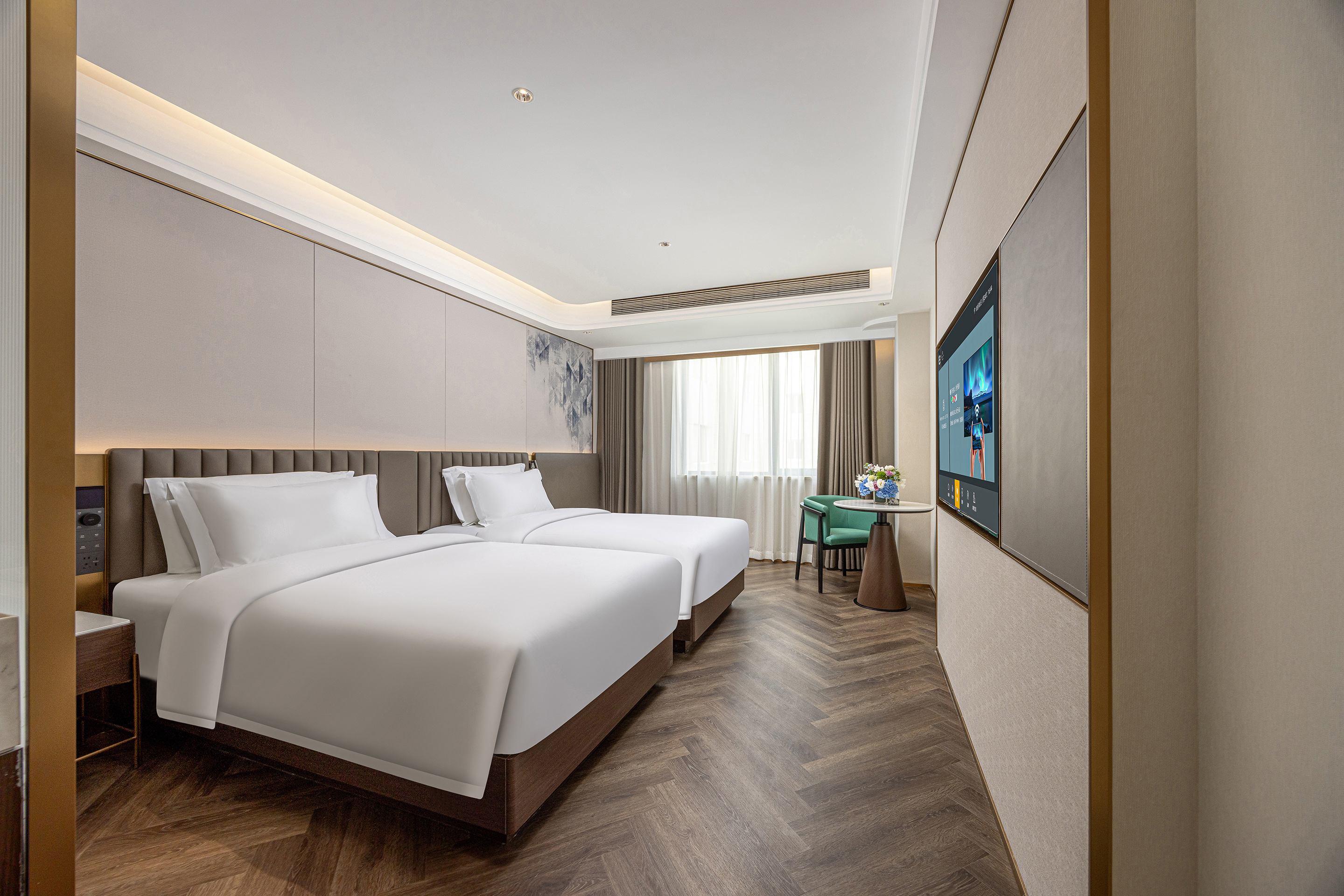 计和人性化细节为特色,致力於为商旅人士和休闲游客提供舒适且有格调的住宿环境。酒店设有166间客房,全屋配备智能家居系统,语音即可操控灯光、窗帘、空调等设备,便捷又省心。酒店配套完善,拥有格调大气的宴会厅与风味地道的中餐厅,可承接商务宴请、家庭聚餐、婚宴等各类活动,满足不同场景需求。装修融合现代美学与实用主义,线条简约流畅,材质质感温润,搭配柔和光影与精致陈设,既显品质感,又能带来温馨舒适的居住氛围,让您的出行更具幸福感。