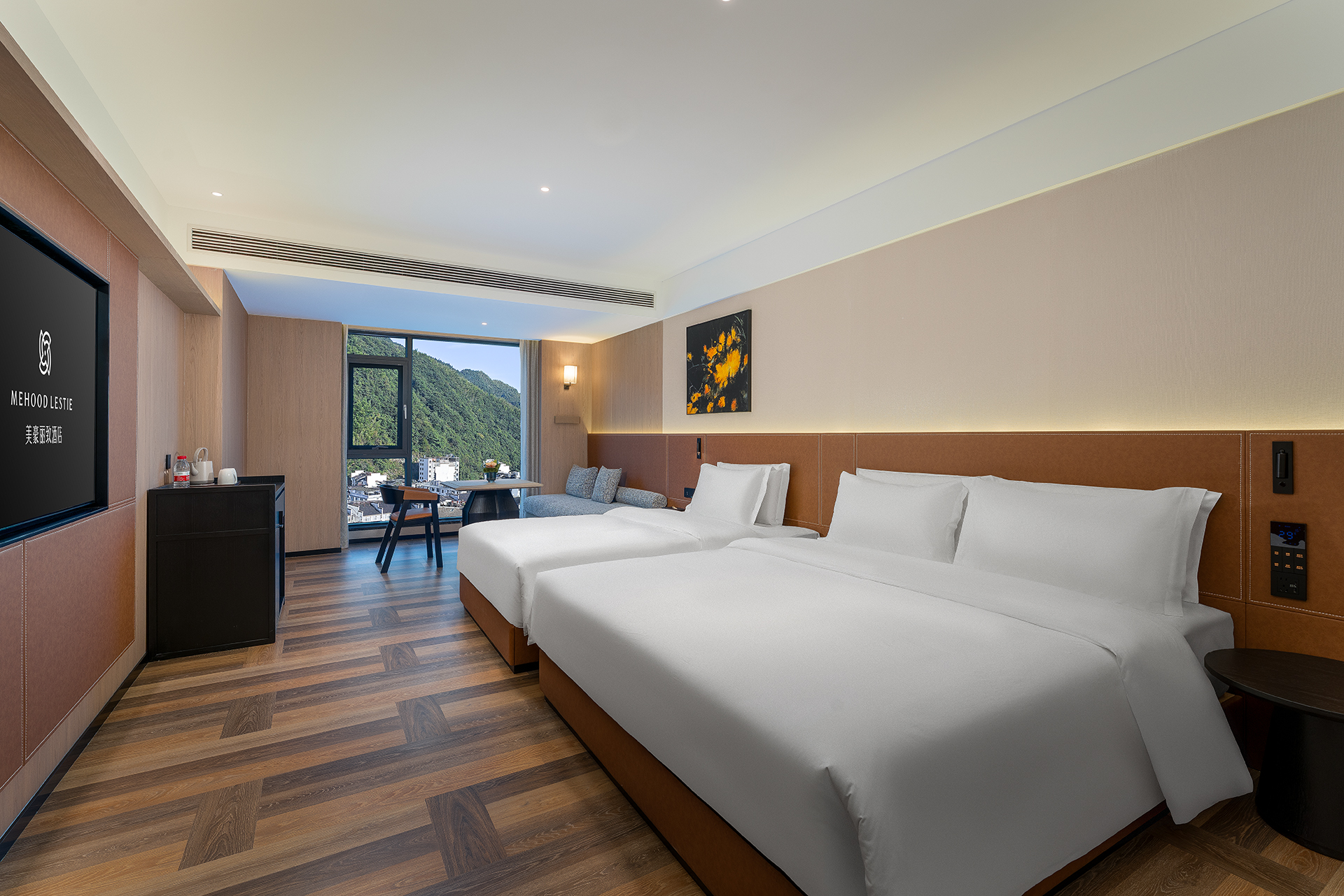 静雅山景大床房-梦百合床垫丨徕芬吹风筒丨智能马桶