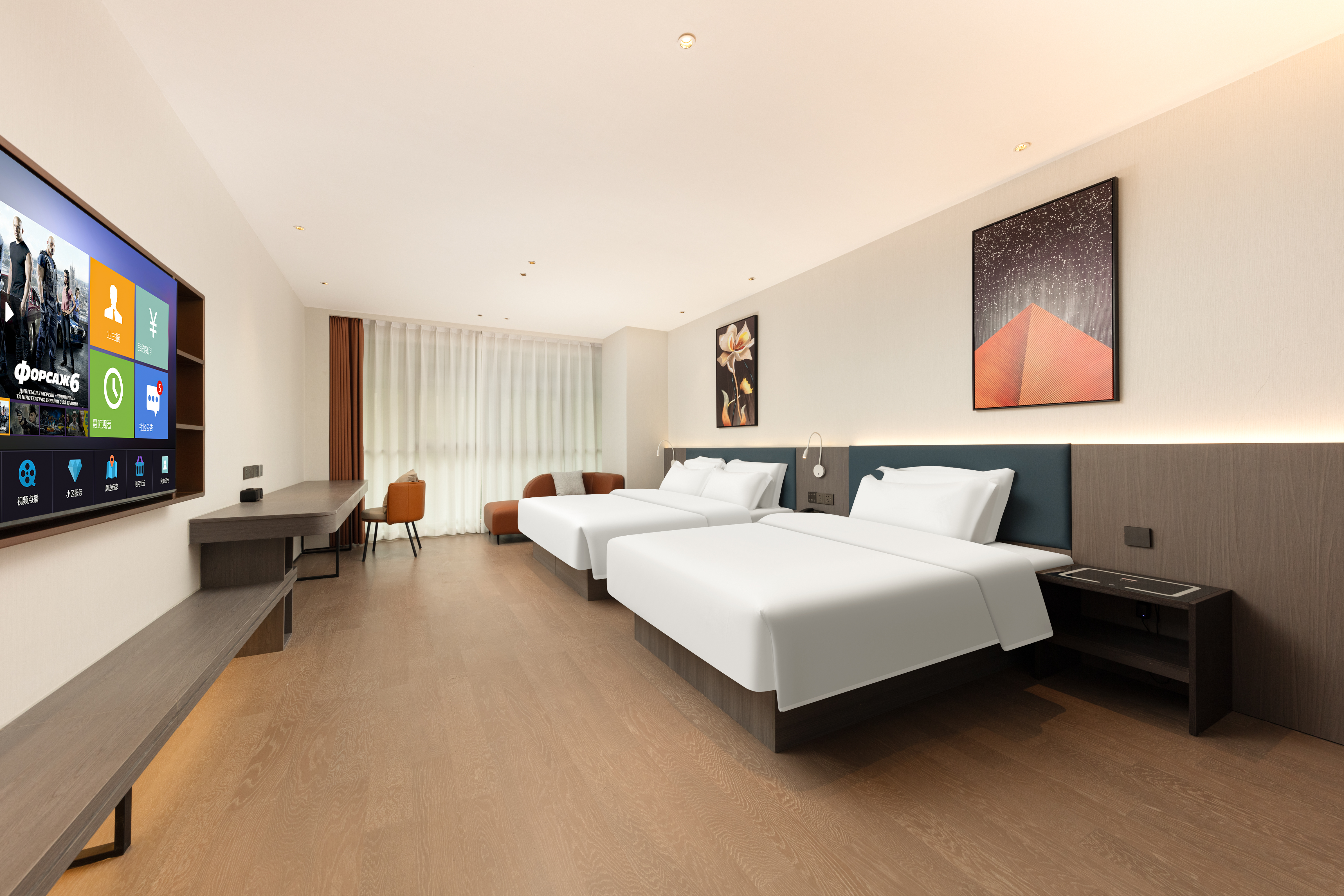 潮玩?智能双床房(全屋智能+零压枕+小冰箱+可投屏)