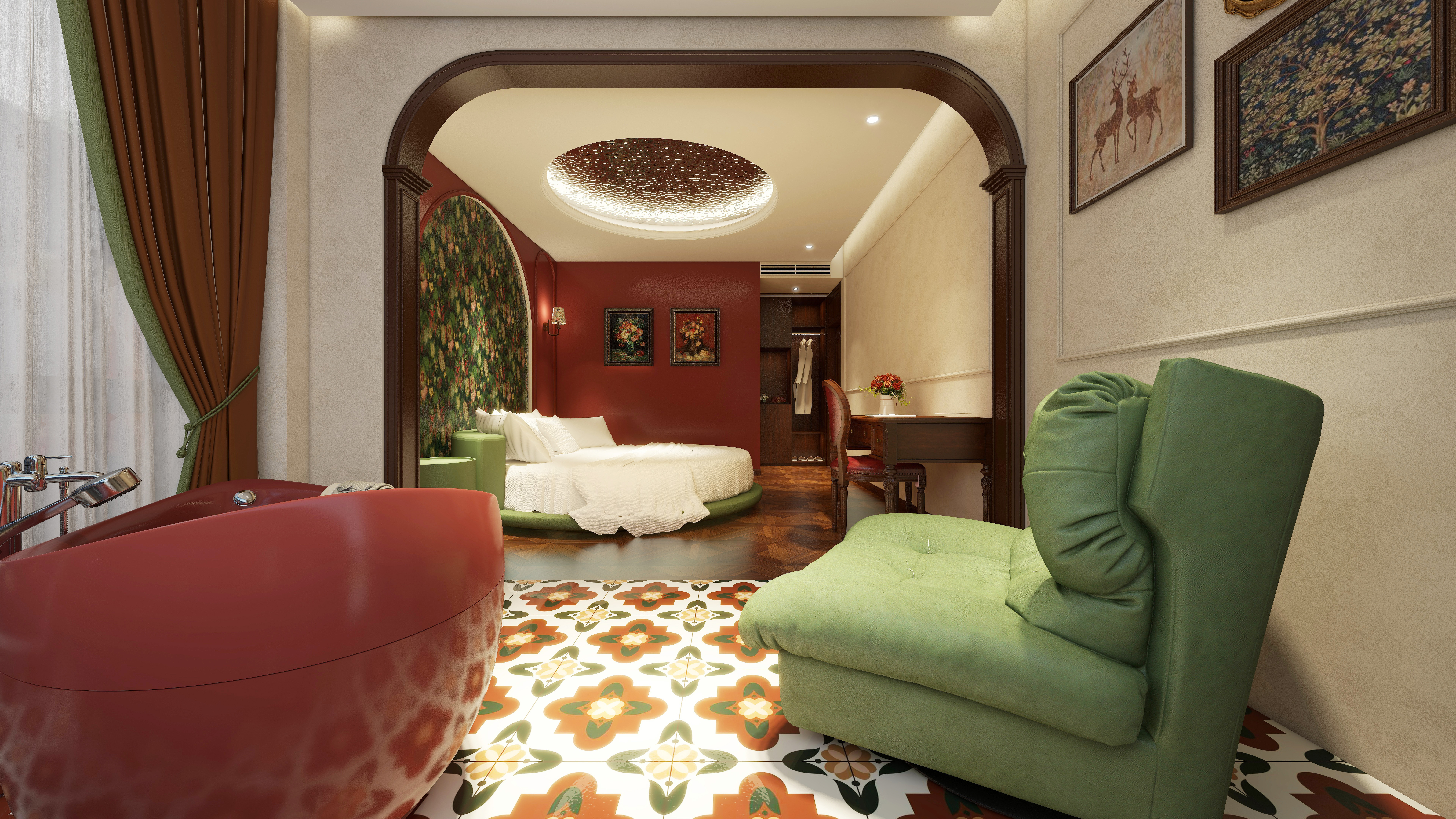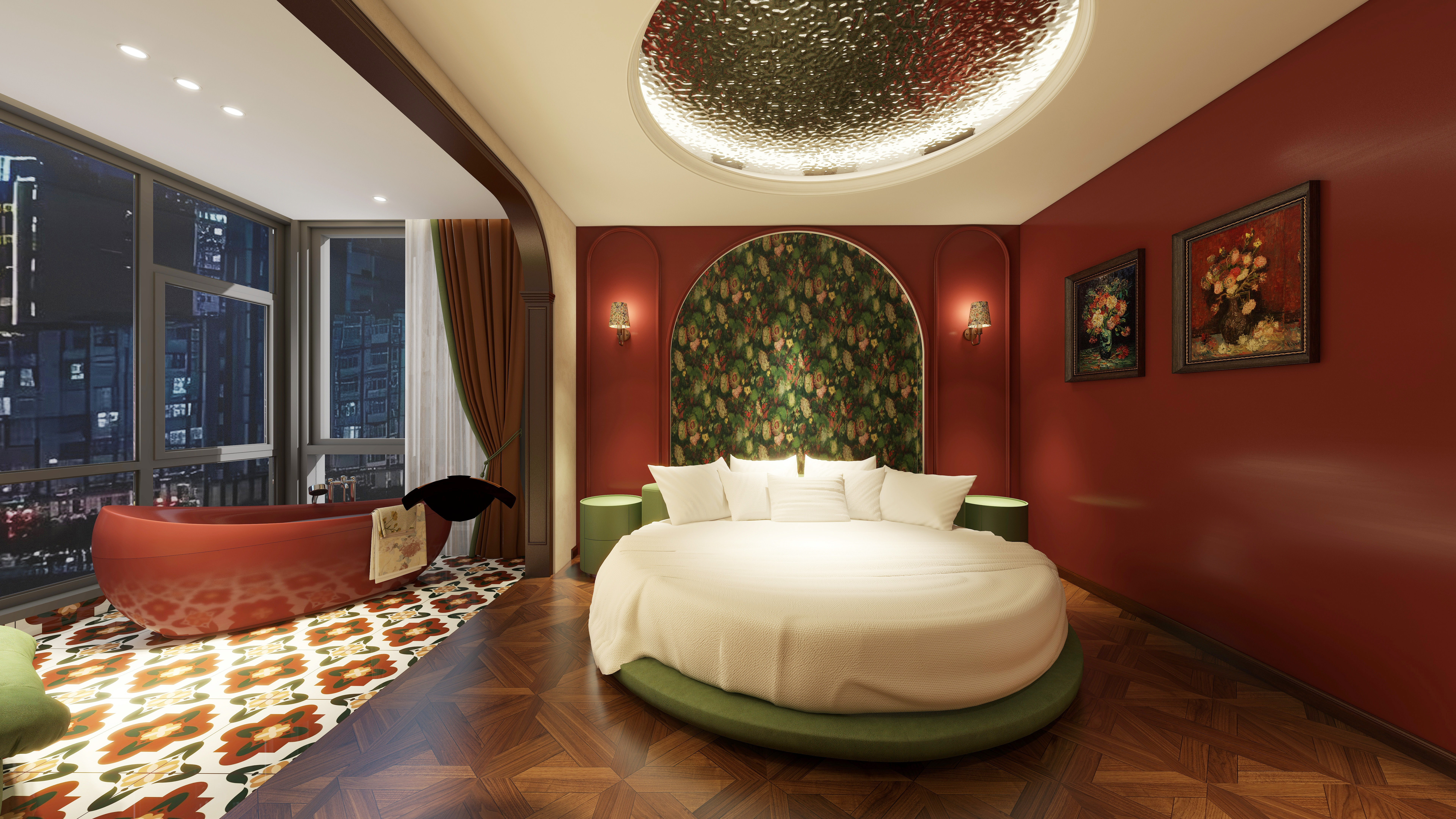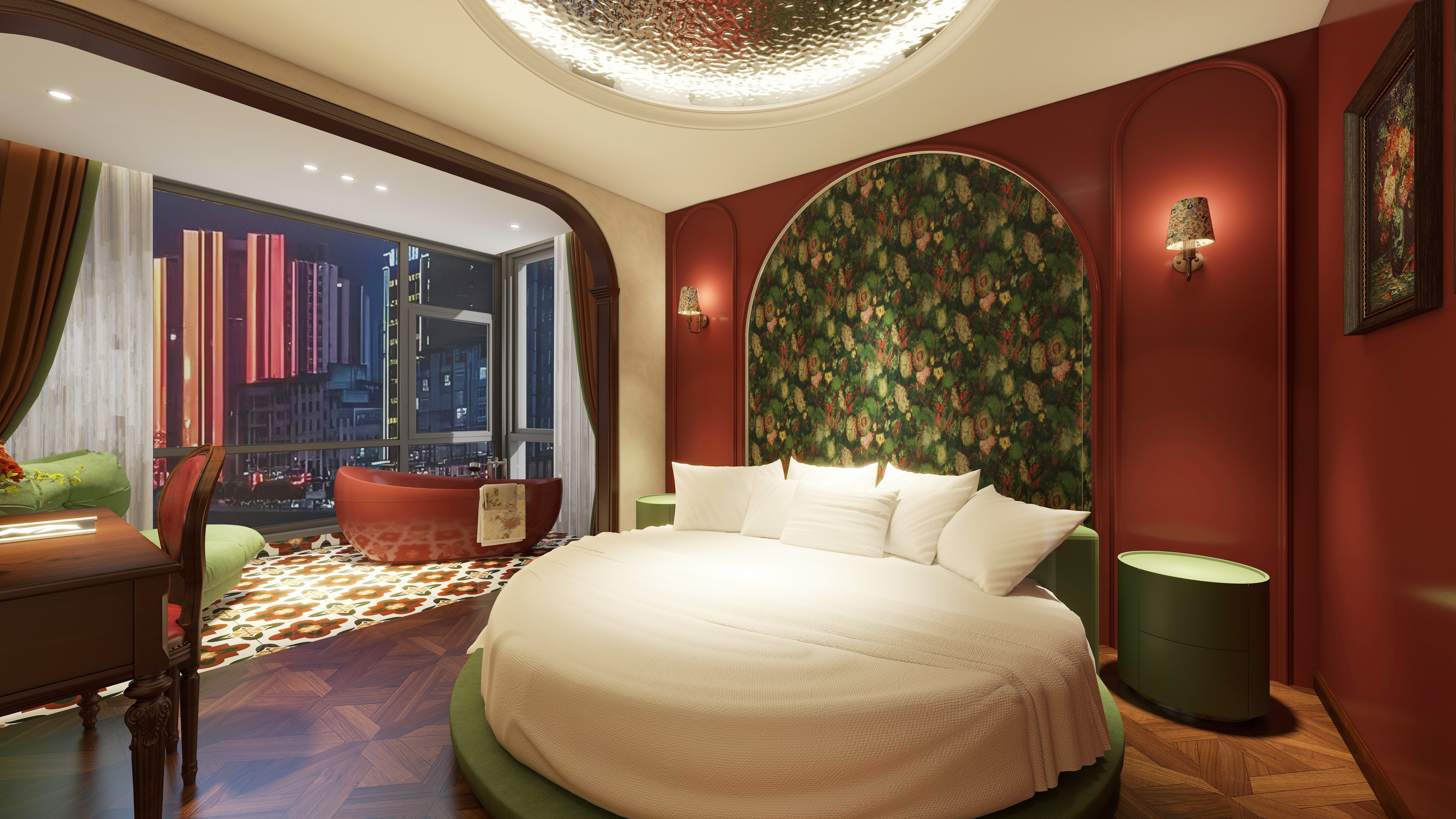 270°江景圆床浴缸主题房【落地窗+巨幕投影+零压床垫】