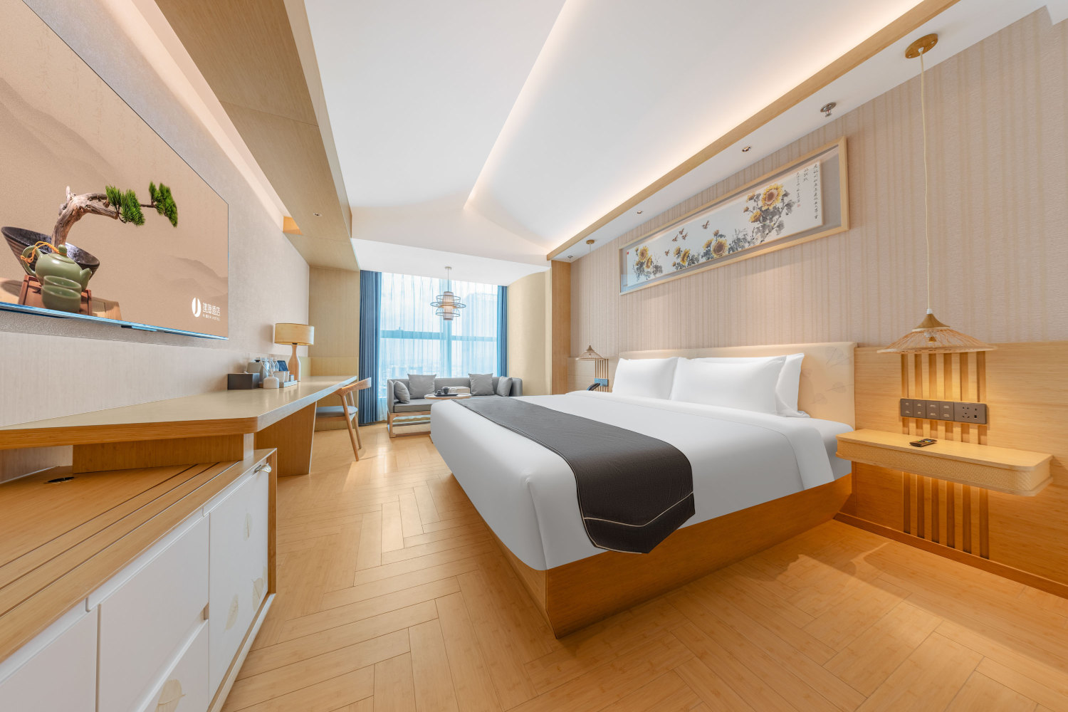 【休闲娱乐与文化体验】为了让您全方位感受中式生活乐趣,大堂设定了璞茶室,与友人对弈品茶,谈天说地。若您喜爱传统文化艺术,酒店还会不定期举办书法、绘画、剪纸等非遗技艺展示活动,邀请入住客人体验参与到中式文化宣传中。