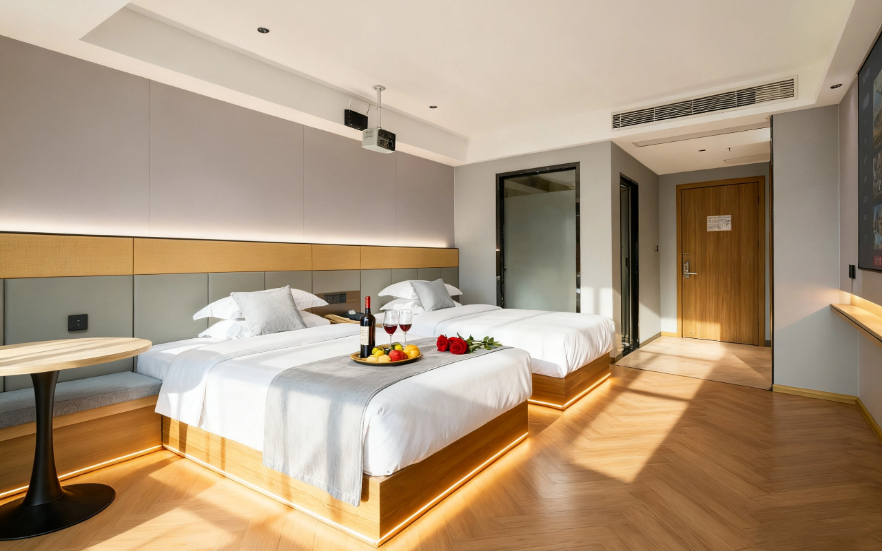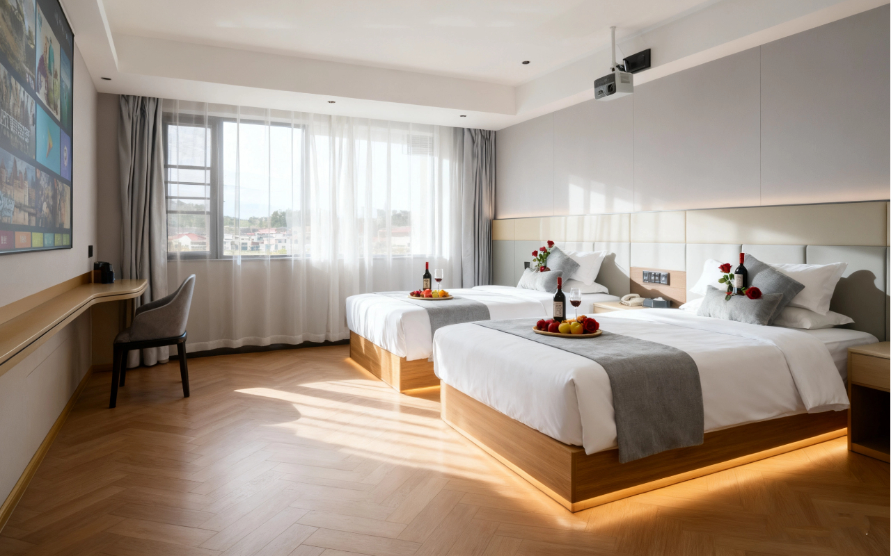 100寸巨幕4K高清影音双床房(舒睡床垫+抗菌防蟎亲肤)