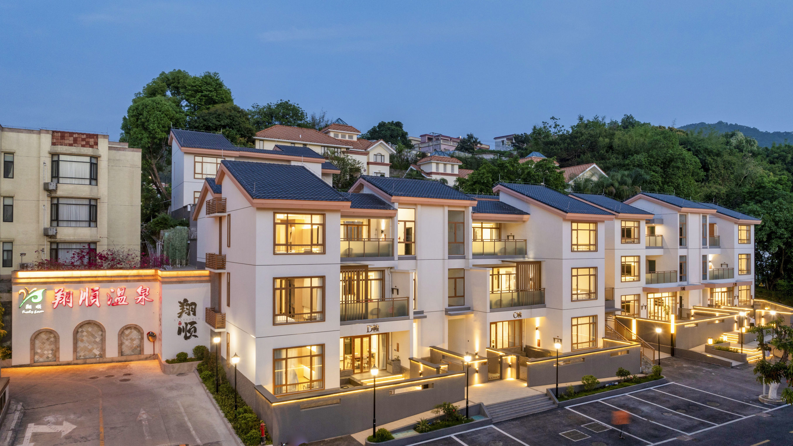新兴翔顺龙山酒店位于新兴六祖故里旅游度假区,近国恩寺,周围山青水碧,风景秀丽,紧邻佛教名刹——龙山国恩寺,附近有藏佛坑、六祖故居等旅游名胜。这里房型种类多样,还设配有私家露天温泉泡池的温泉别墅房。半山独幢别墅设计新颖,更配有小花园、私家浸泡温泉池等。 这里的温泉拥有景观欢乐池、儿童戏水池、游泳池、特色水疗池、热石床、湿蒸房等。龙山温泉水被誉为“神仙水”,含有多种矿物元素。酒店有中餐大厅、中餐包房,还有自助餐厅,由名师主理,中西结合。多功能会议室3个,分别可容纳30人、60人和150人。其他休闲娱乐设施还有卡拉OK歌舞厅、篮球场、健身房等。