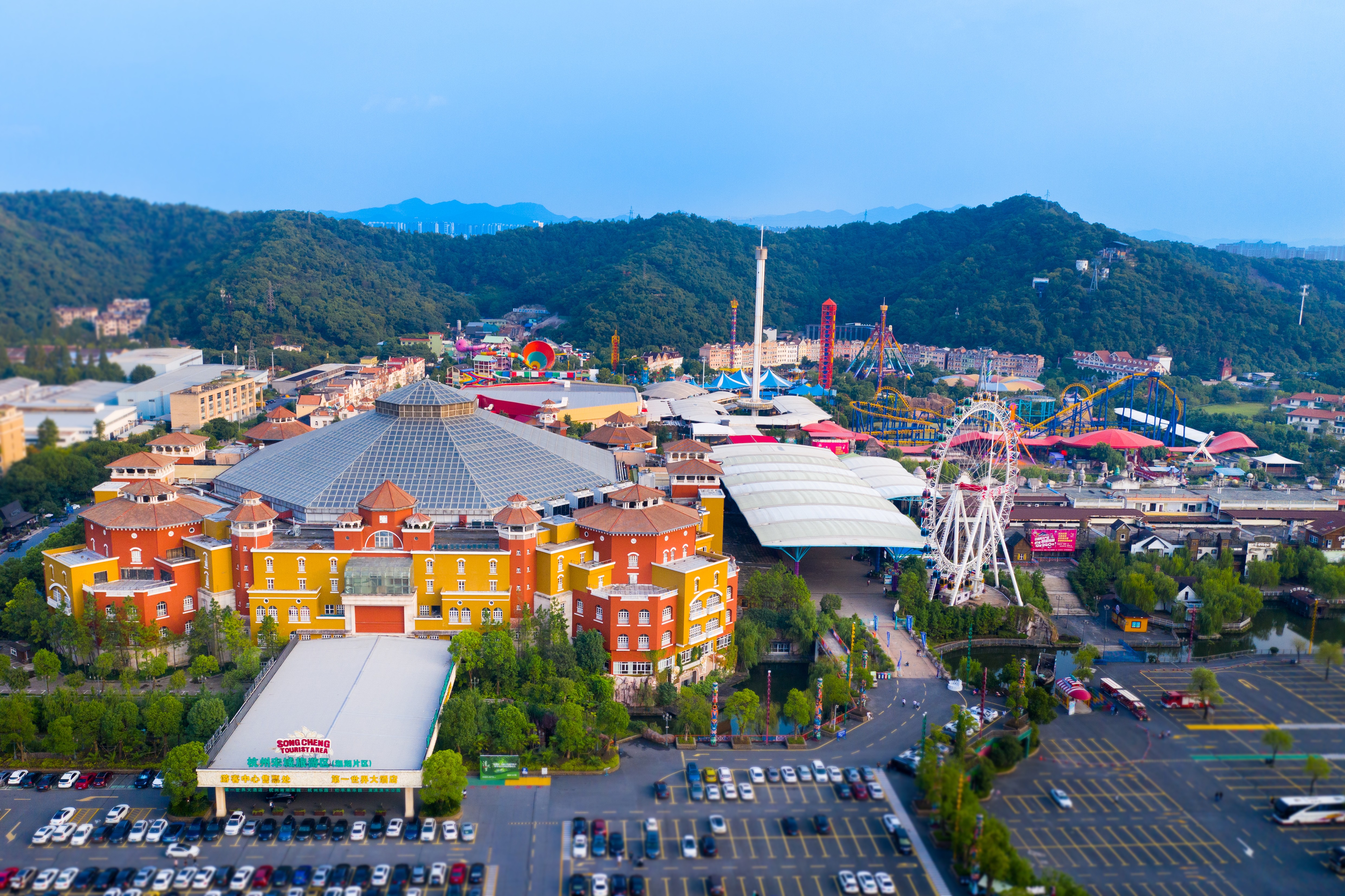 The First World Hotel (Songcheng Hangzhou Paradise Tourist Area)is located on the bank of Xiang Lake, Hangzhou, 2.9 kilometers away from the downtown. The departure station of Metro Line 1 is at the entrance of the resort. Shanghai-Hangzhou-Ningbo Expressway, Hangzhou Xinjing Expressway and Jin Liwen Expressway are close at hand. It only takes about 2 hours to reach Shanghai and Ningbo.It only takes more than 20 minutes to get to the center of Hangzhou, West Lake Scenic spot, Hangzhou Railway Station and Xiaoshan International Airport.The First World Hotel (Songcheng Hangzhou Paradise Tourist Area) is adjacent to Hangzhou Paradise, the Crazy Apple Land, Langlanglang water Park and Yunman Hot Springs. The surrounding area also has 4A scenic spots the Xiang lake, polar ocean park and other powerful tourism supporting. The First World Hotel (Songcheng Hangzhou Paradise Tourist Area) is fully linked with the scenic spot and there are different theme activities during different seasonal periods around parent-child and vacations. The immersive parent-child rooms and other unique experience make the same vacation,different feeling.The hotel has won five awards in the industry: China's top ten parent-child hotels; China's top ten conference and exhibition hotels "Xingguang Award"; "China's top ten tourist hotels" and other honors.With a total construction area of 80,000 square meters, the hotel is the first five-star rainforest Hotel under the Songcheng Group. It has 365 guest rooms and restaurants of different styles which can accommodate 3000 people at the same time. The First World Hotel (Songcheng Hangzhou Paradise Tourist Area) connects Yunman hot spring, "do not leave the house" to enjoy the urban forest hot spring bath.The Ferris wheel next to the hotel overlooks the resort and the XiangLake,The first World Hotel is the first hotel in China to create a "conference service expert". It has 21 conference rooms and powerful supporting for three thousand-person venues. As a continuous host of China International Animation Festival, World Leisure Expo and other large-scale conference activities, the hotel won a number of honors in the industry.