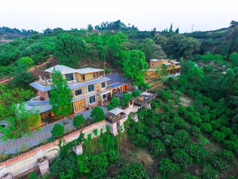 眉山盘桓小筑位于四川省眉山市彭山区江口村,地处高山之上,俯瞰整个彭山繁华之景。顺岷江边前行,于石龙山盘旋而上,闻花香浓郁,便是盘桓小筑的入口处。