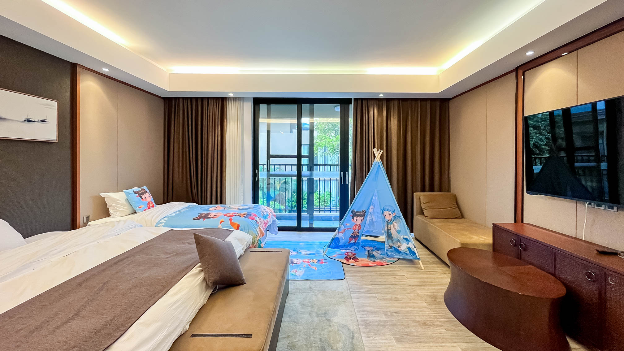 亲子四房别墅丨全套间+戏水池+KTV+麻将机+烧烤架+玩具