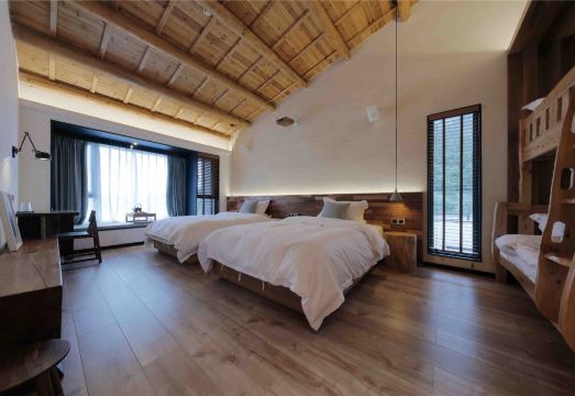 武夷山岚境·不念酒店位于武夷山核心风景名胜区内,在武夷山标志景点大王峰脚下的兰汤村内,是武夷山少有的宝地。不念的空间不复杂,除了保留了闽越武夷的特色屋顶元素外,更多融入了现代的解构风格,给予了现代人尽可能舒适的空间体验。破除原有武夷山建筑采光不足的问题,尽可能的保证了每间房间的观景视线与采光。“岚境·不念”拥有家庭房、复式阁楼房、观景玻璃房、套房等14间各式客房。设计风格延续了当下流行的简约风格,同时又在细节处精致修饰,与推窗远望的世界自然遗产武夷山相互交映。岚境·不念”是一个为您重新定义生活的地方,对于生活品质的细节一刻也不会放松。大量胡桃木,黄铜与水磨石的运用,是对自然遗产的尊重。在床品方面,为了营造舒适的住宿体验,精选了高档乳胶床垫与乳胶枕,配搭80支精梳棉的床品。“不念”的日用品来自澳洲的APPELLES自然精华四件套,这在武夷山名宿领域可是少有的。