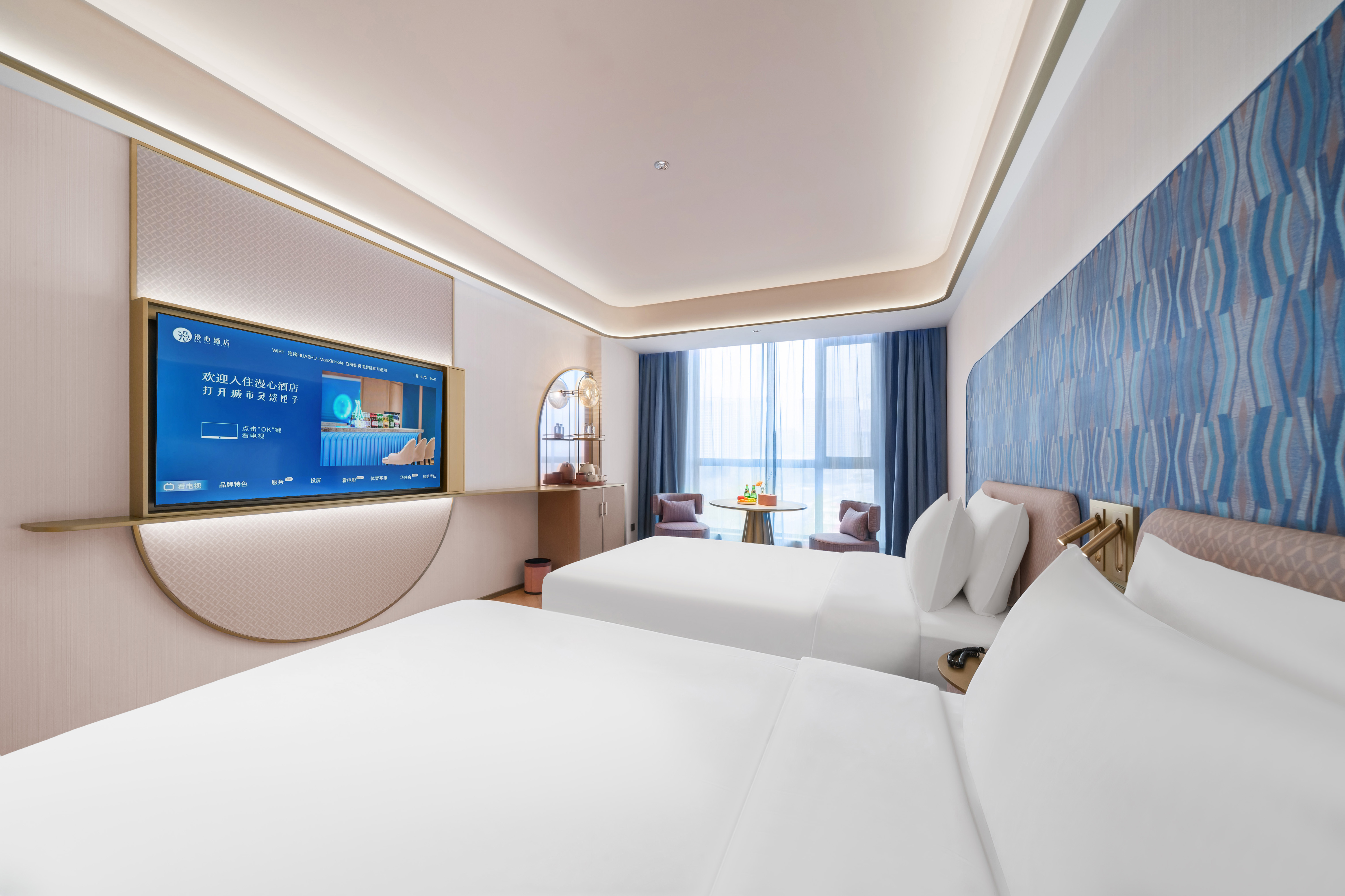 心悦高级双床房(智能客控+65寸可投屏电视+落地窗)