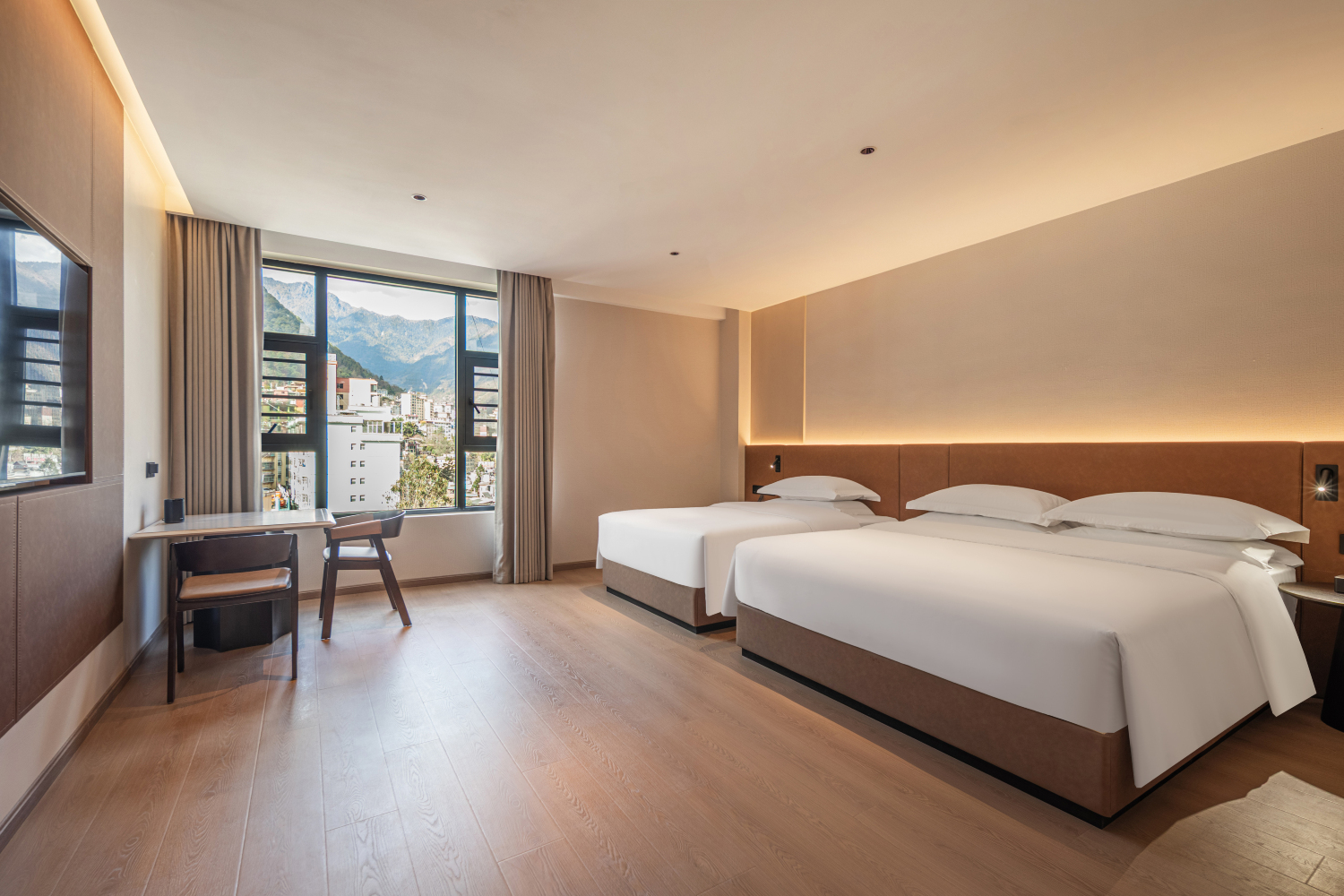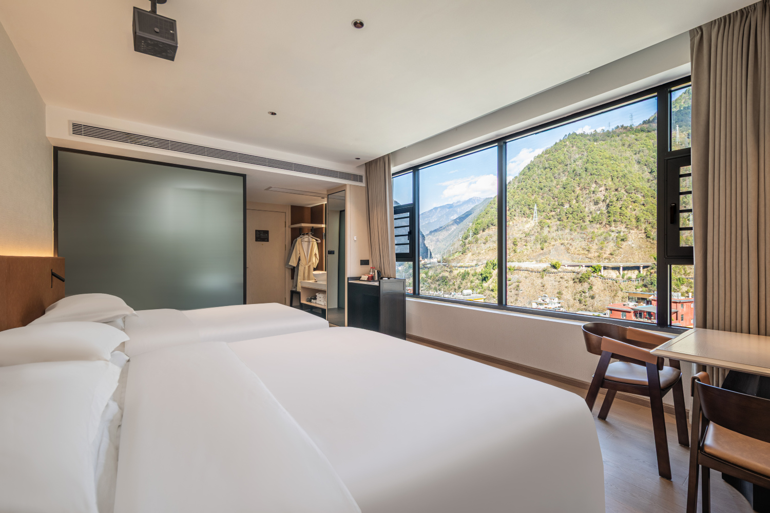 美豪丽致酒店,艺科集团旗下高端商务品牌。位于滇西北的褶皱深处,怒江以远古的脉搏击穿峡谷。我们的酒店并非‘坐落于此’,而是从亿万年的地质记忆与傈僳族的火塘故事中生长而出——这里能枕着江水雷鸣入睡,同时触碰云雾与星河的避世之所。从酒店庭院的小径出发,十分钟可赤足踏入怒江的清凉浅滩;徒步二十分钟,即抵达傈僳族村庄,听非遗传承人吟唱‘优叶’古调。当怒江的磅礴化作窗外的私享画卷,您的休憩空间亦成为自然诗篇的延续。客房以原木与粗犷纹理构筑了通透而温暖的避风港,每一扇窗都框景成画。我们深知深眠是旅程的灵魂,为此,特选云垫般承托身心的床榻,让您在松涛与江吟的自然低语中,坠入一夜酣沉无梦的怀抱。我们酒店紧邻“最美公路”219国道,沿路风景独特、江山秀美,碧罗雪山与高黎贡山之间的怒江大峡谷绵延400多公里,美景连连:老姆登、石月亮、孔雀山等打卡必去点,还有最后一个通公路的“秘境”独龙江,此乃四江并流之处值得探索。酒店配有早餐厅、会议室、健身房、洗衣房、观景台、大型停车场,让您出行无忧。用我们真诚友好、亲切有礼的贴心服务,给您创造一段值得回忆的温馨旅程。