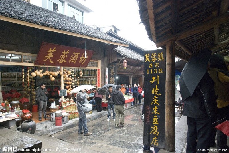 湖南永顺县芙蓉镇核心景区内刘晓庆米豆腐店土司王府旁