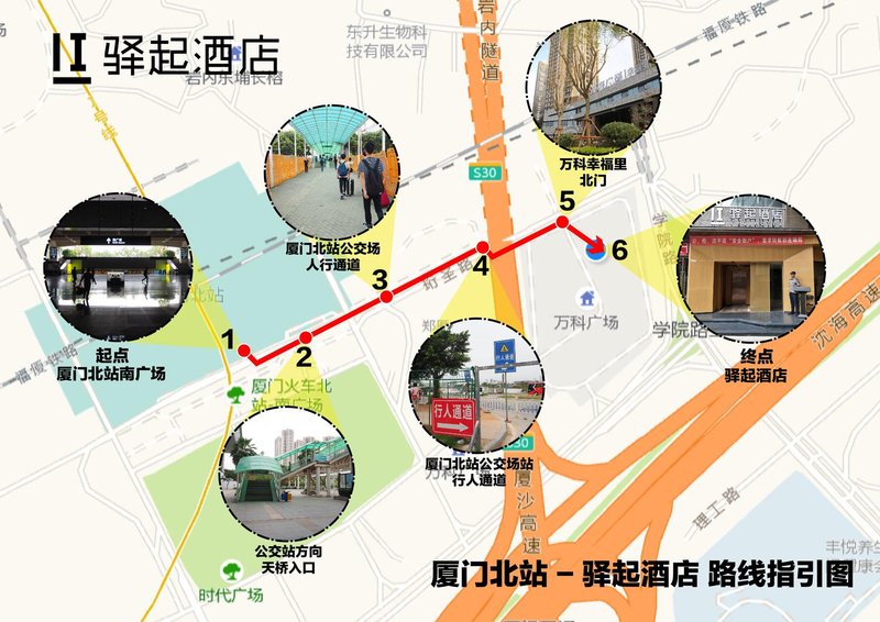 驿起酒店(厦门北站店)地址:福建 · 厦门 · 集美区 · 厦门北站旁万科广场商业街内2-6楼
