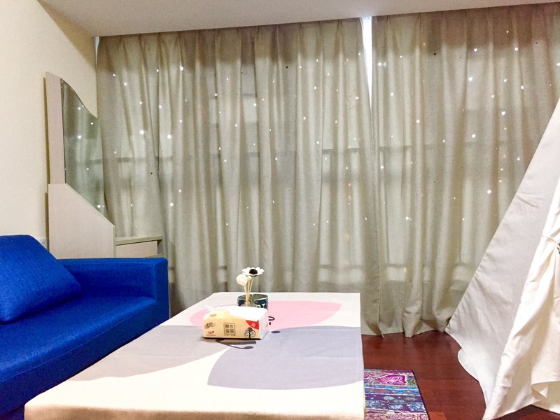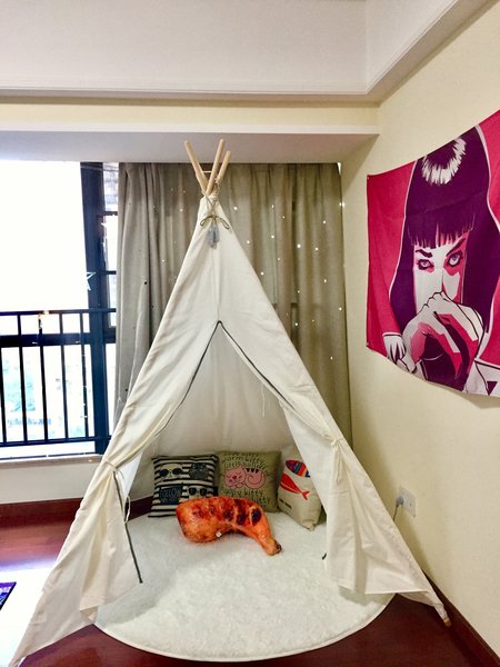 【房屋设计】房屋配有落地窗,搭配星星灯,给漆黑的夜晚增添一丝温暖;客厅有一个帐篷,愿入住的每一位朋友在那里可以找回一点童心;愿你在喧嚣的城市里有一个造梦的空间。