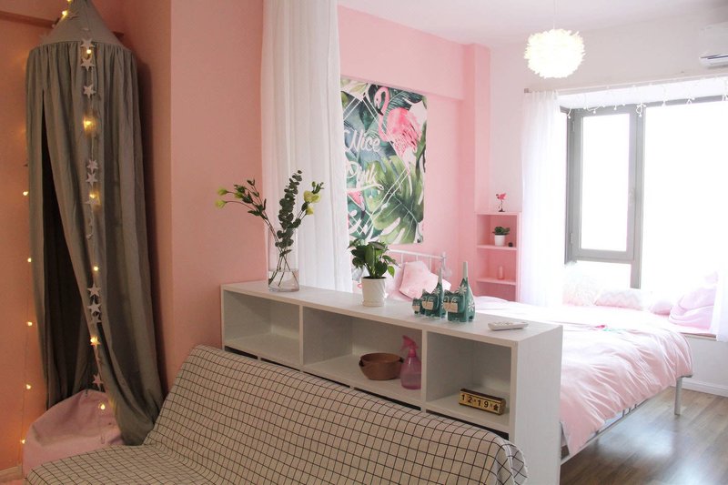 房源:偏好北欧风,非常的粉色少女系,房间通风视觉效果非常好,坐在飘窗上往左俯视湘江,往右看繁华的解放西夜景。