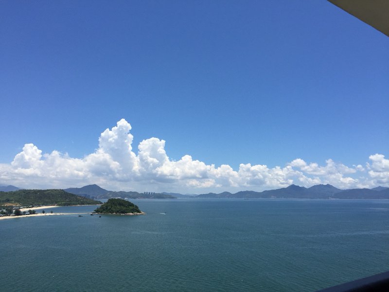 楼下海边有栈道,可以自行车沿海骑行,风景迷人。往东骑15分钟到小径湾沙滩,沙子非常细,沙滩边有步行街,购物饮食一体。